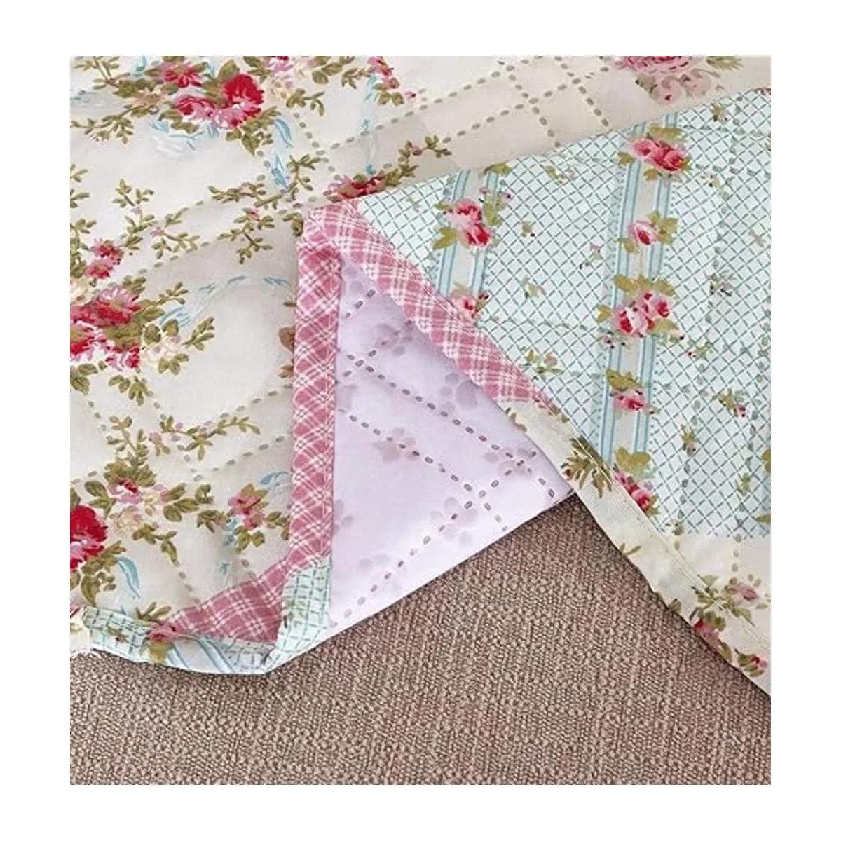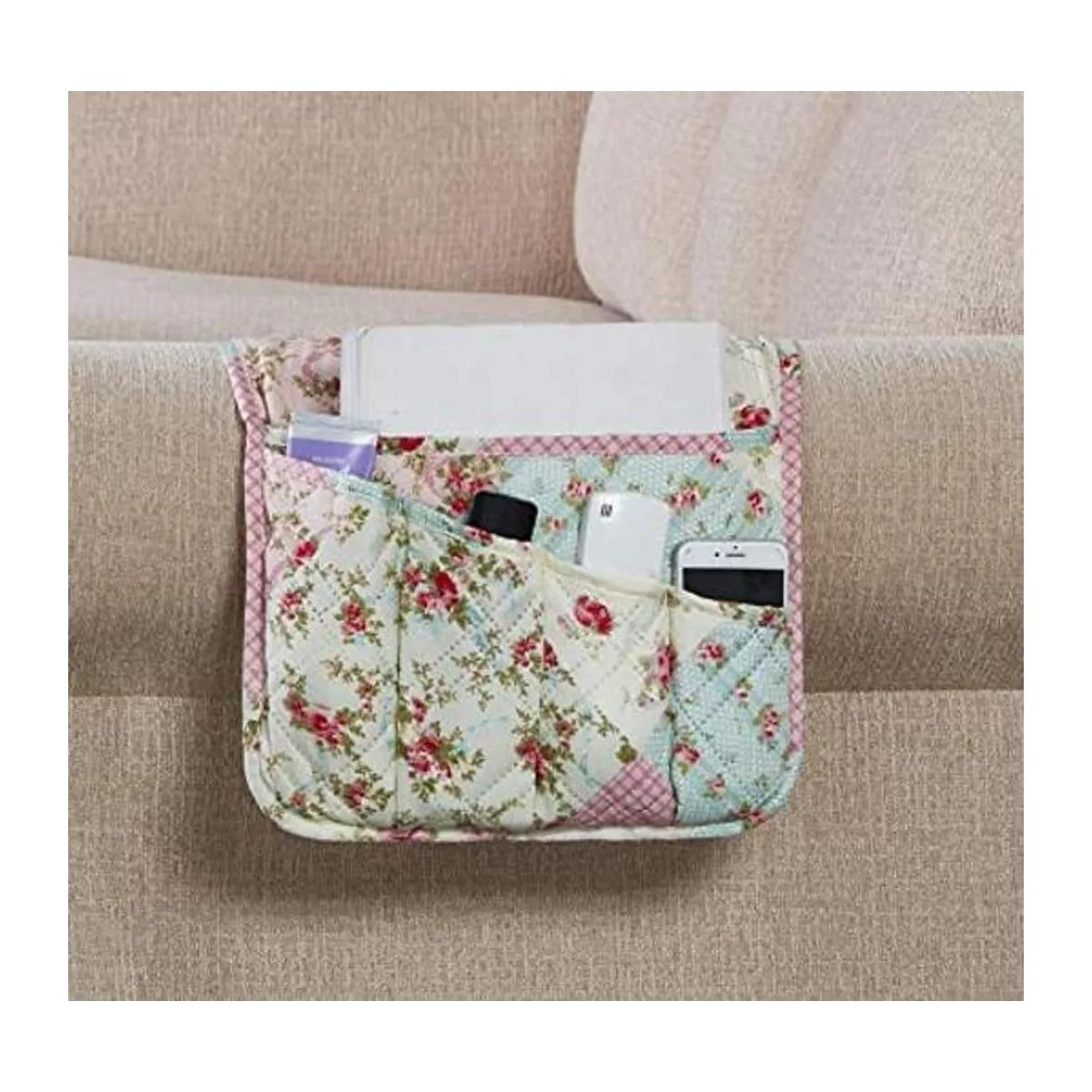 Organizador con diseño único: patrón de retazos de rosas rosas rosas y verdes, con acolchado de doble diamante, elegante, encantador y único. Mantén tus accesorios organizados y protege el reposabrazos de tu sofá. Reverso a un patrón de puntos de silicona mejorado, antideslizante.