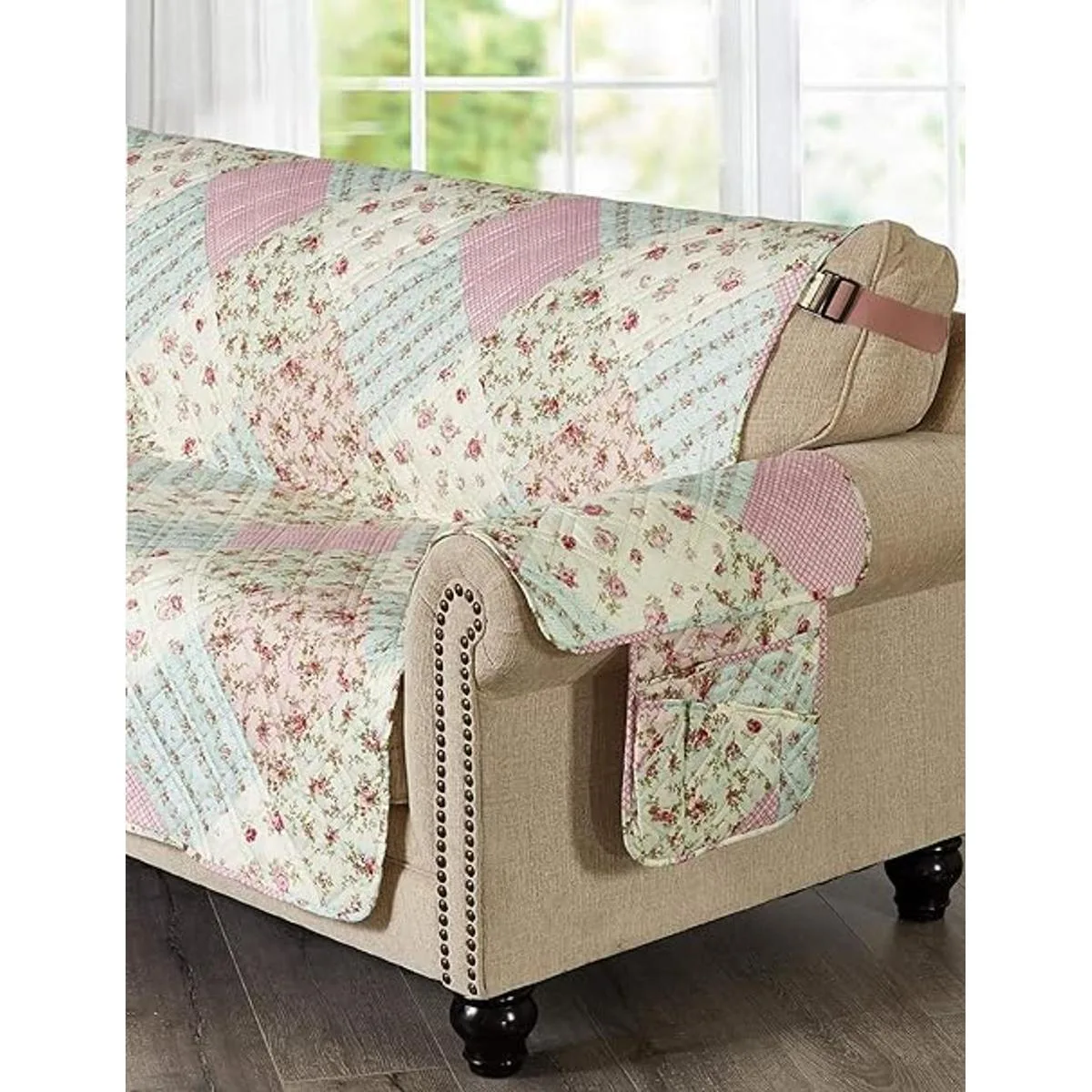 Brilliant Sunshine Protector de sofá reversible acolchado con diseño de patchwork y bordado, capasrelleno suave, correa elástica de 2, lavable a máquina, funda para silla, para niños, mascotas