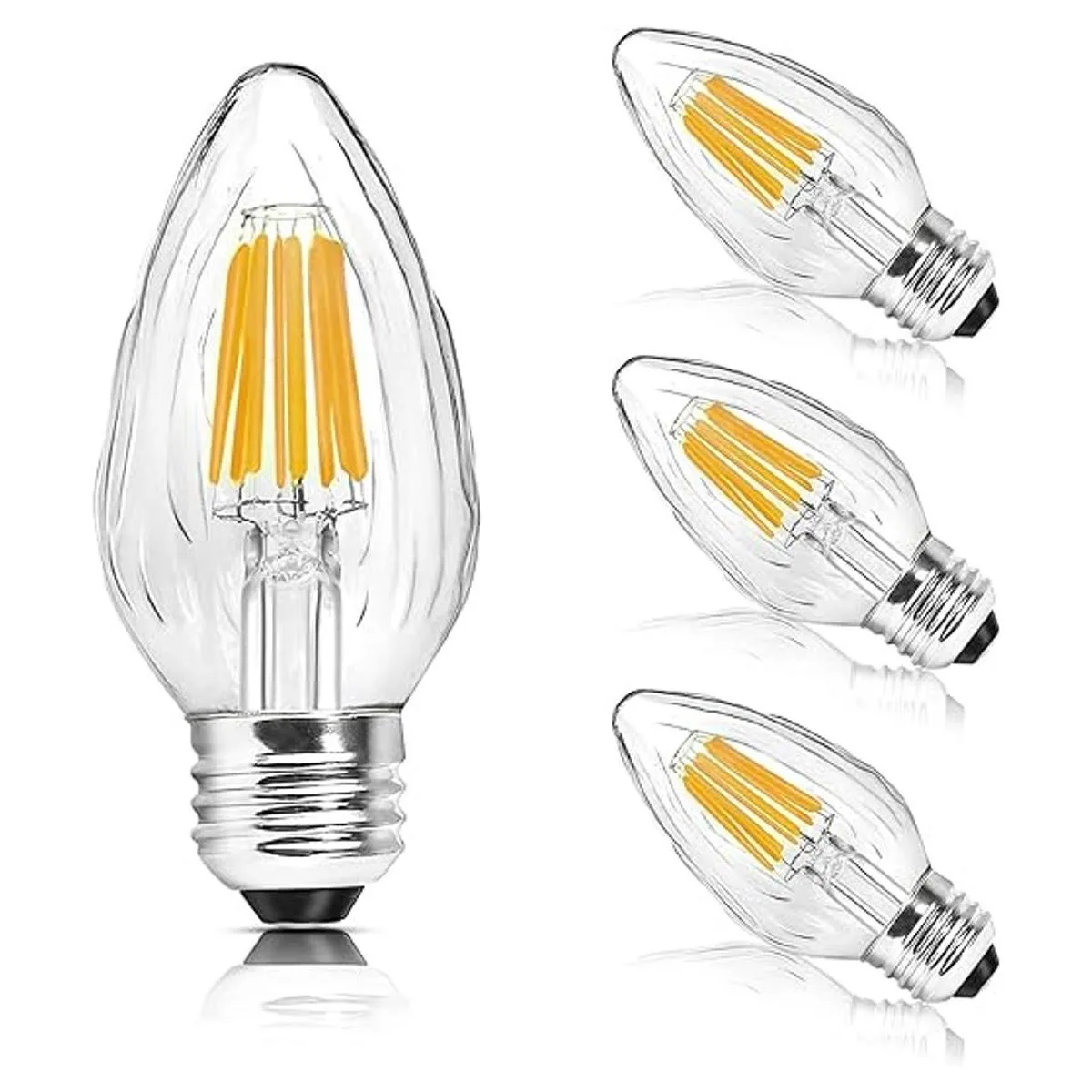 BRIMAX F15 Bombilla LED de porche de 8 W para exteriores, bombilla LED para poste de 75 W a 80 W, equivalente incandescente a 80 W, base media E26, regulable, 2700 K, vidrio de llama blanca cálida, para ventilador de techo y lámpara de farol, paquete de 4