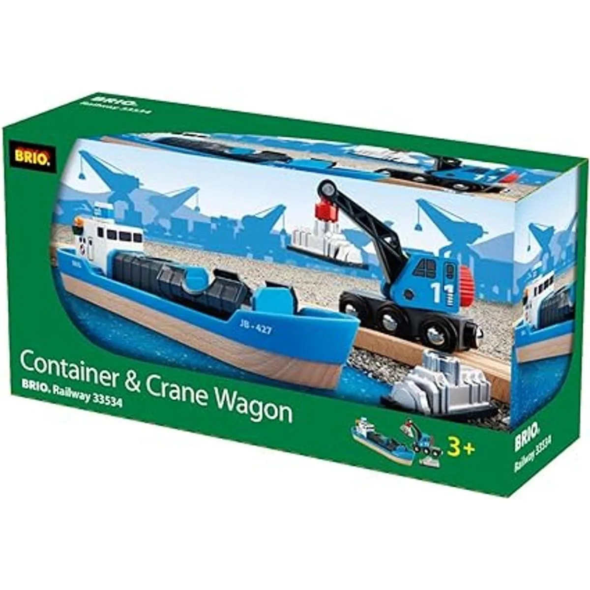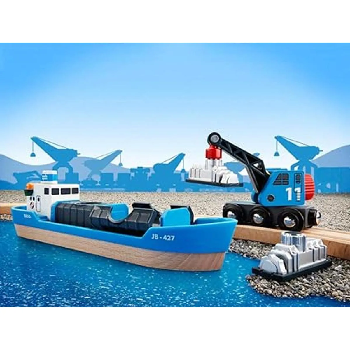 BRIO Barco contenedor y carro de grúa, incluye 2 cargas magnéticas.