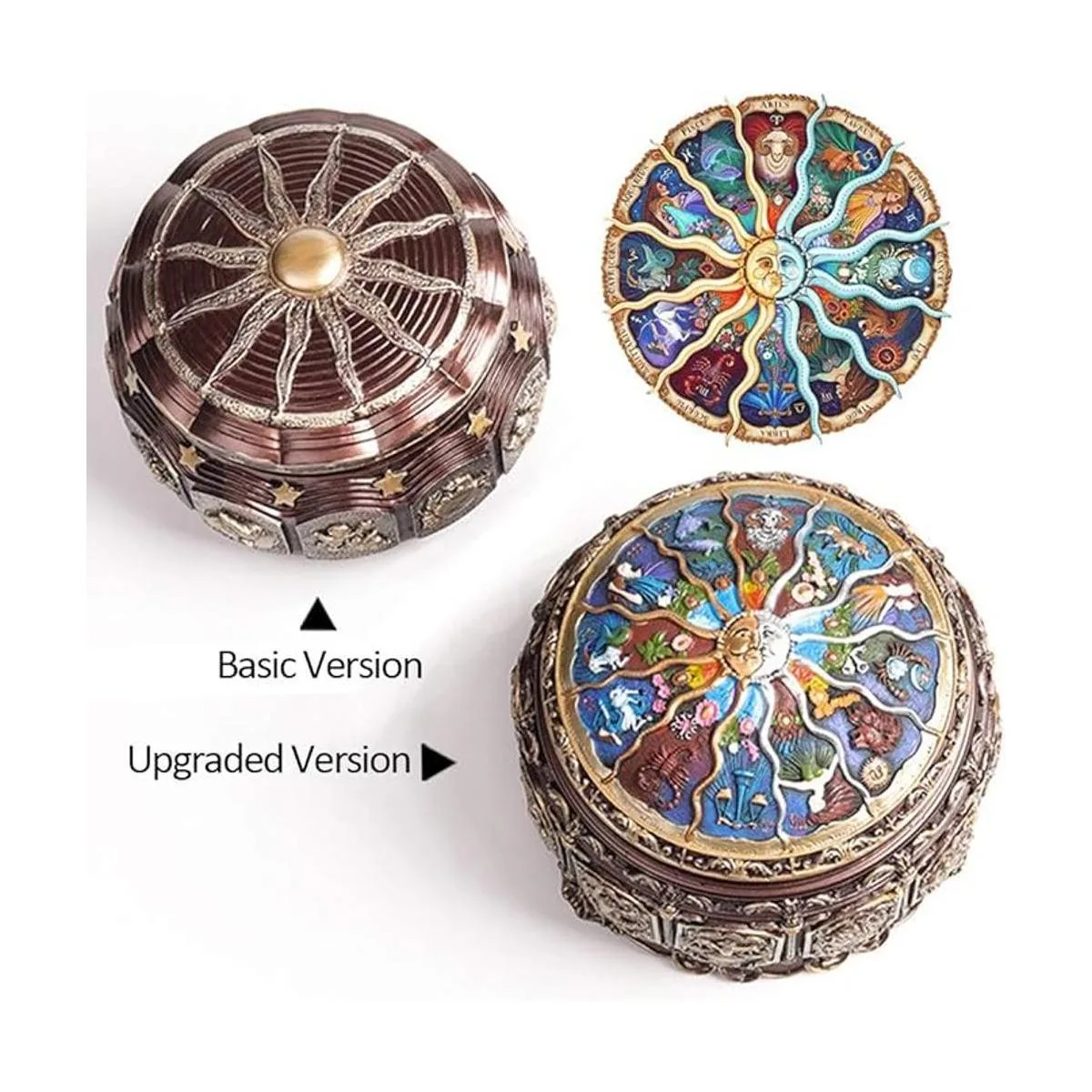 Material resistente, hermoso diseño, bonita artesanía, perfecto para cualquier coleccionista de cajas de música. Los 12 signos del patrón del zodiaco son muy clásicos, los patrones de constelación y los símbolos de onstelación son muy maravillosos.