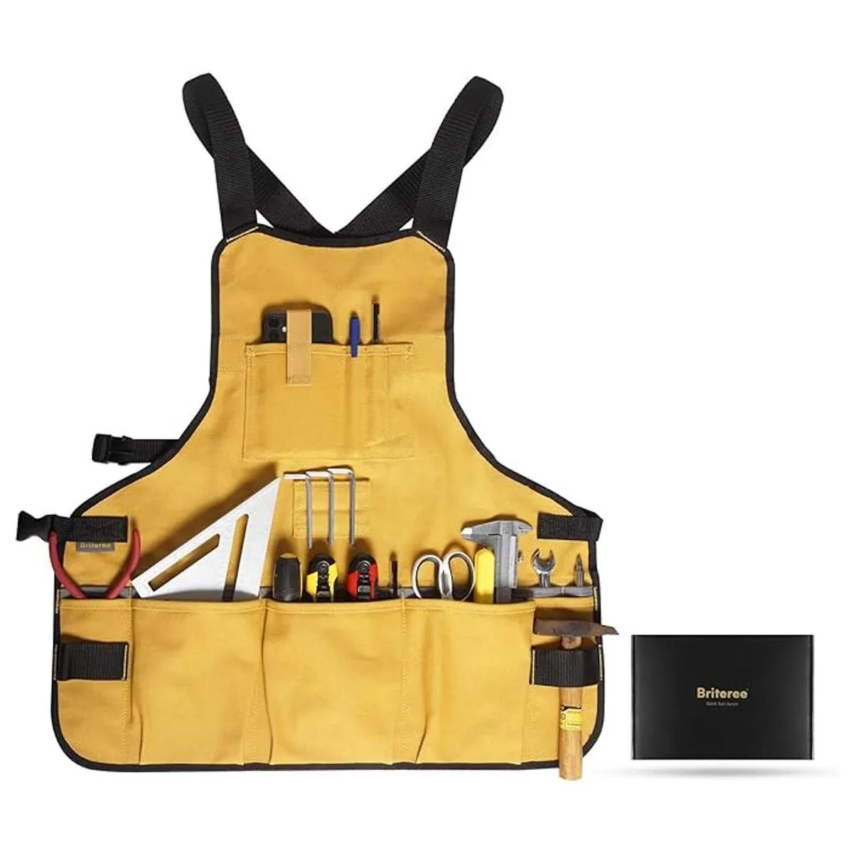 Briteree Delantal de herramientas de trabajo para hombres y mujeres, longitud del torso con 21 bolsillos para herramientas, regalo para padre carpintero, delantal de lona duradero para carpinteros, mecánicos, pintores, jardineros y entusiastas del bricolaje