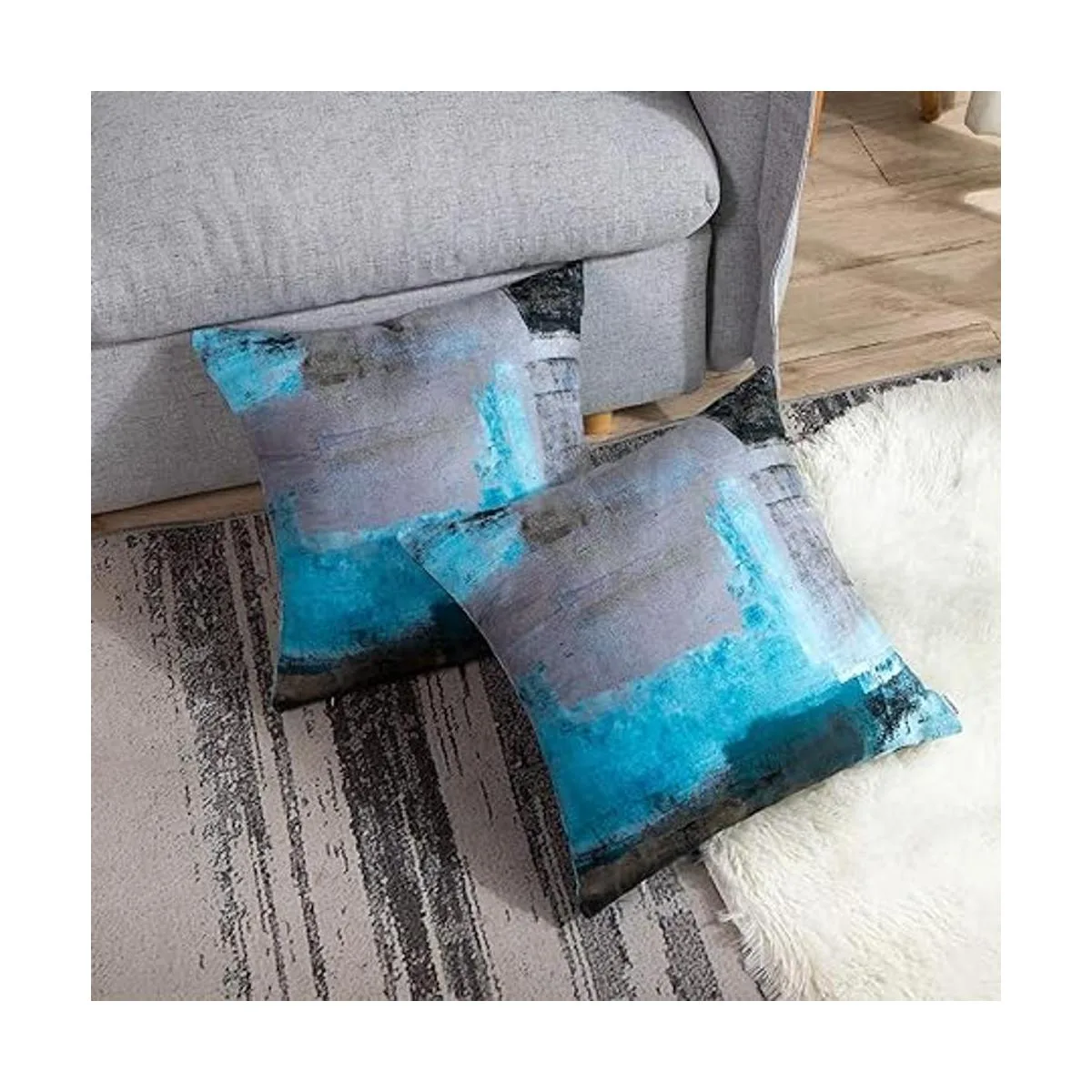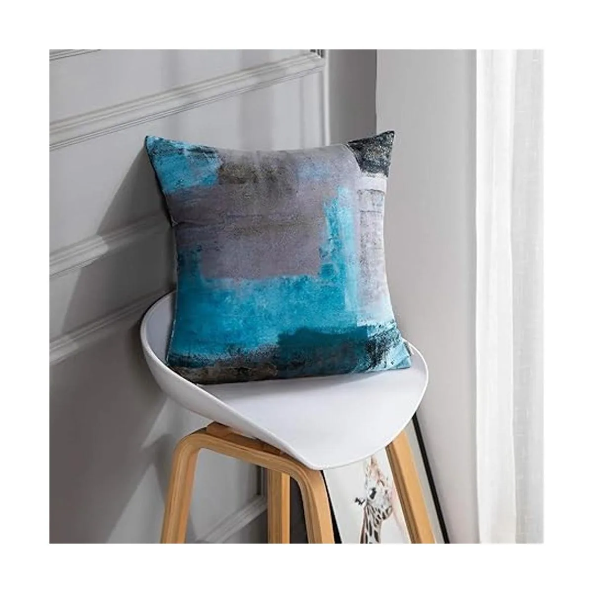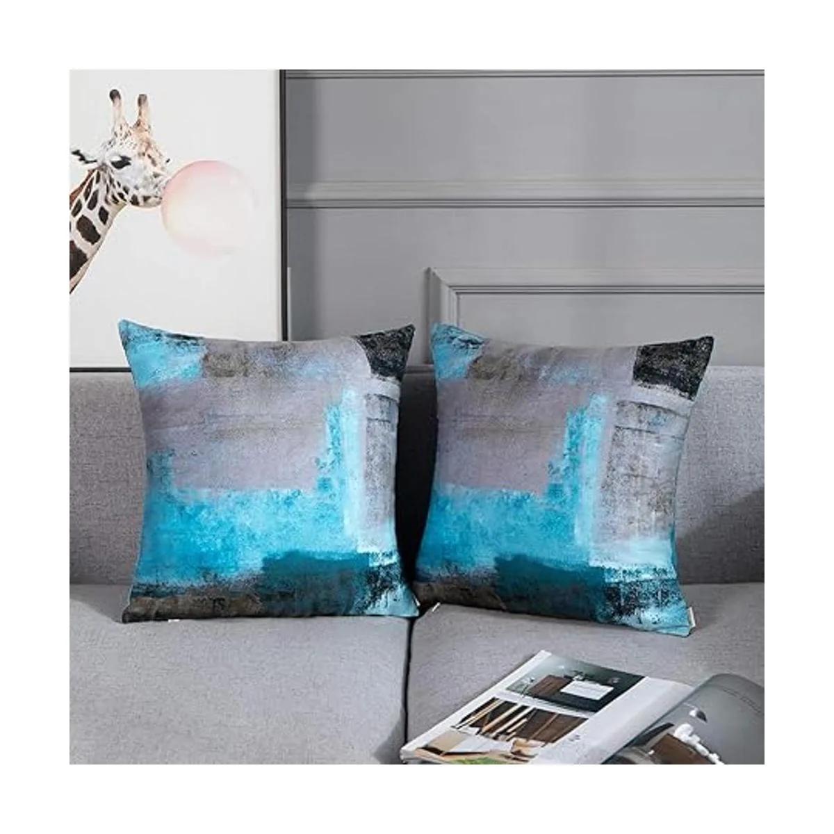 Britimes Juego de 2 fundas de almohada decorativas modernas para decoración del hogar, 16 x 16 pulgadas, fundas de almohada decorativas, pinturas al óleo abstractas para dormitorio, sala de estar, sofá, sofá, color verde azulado