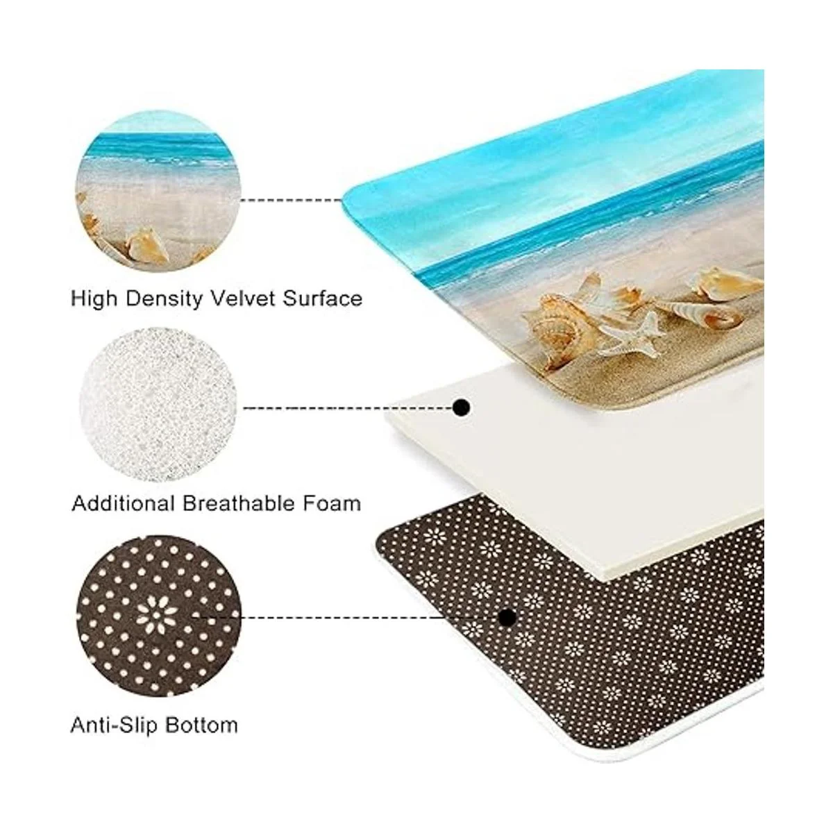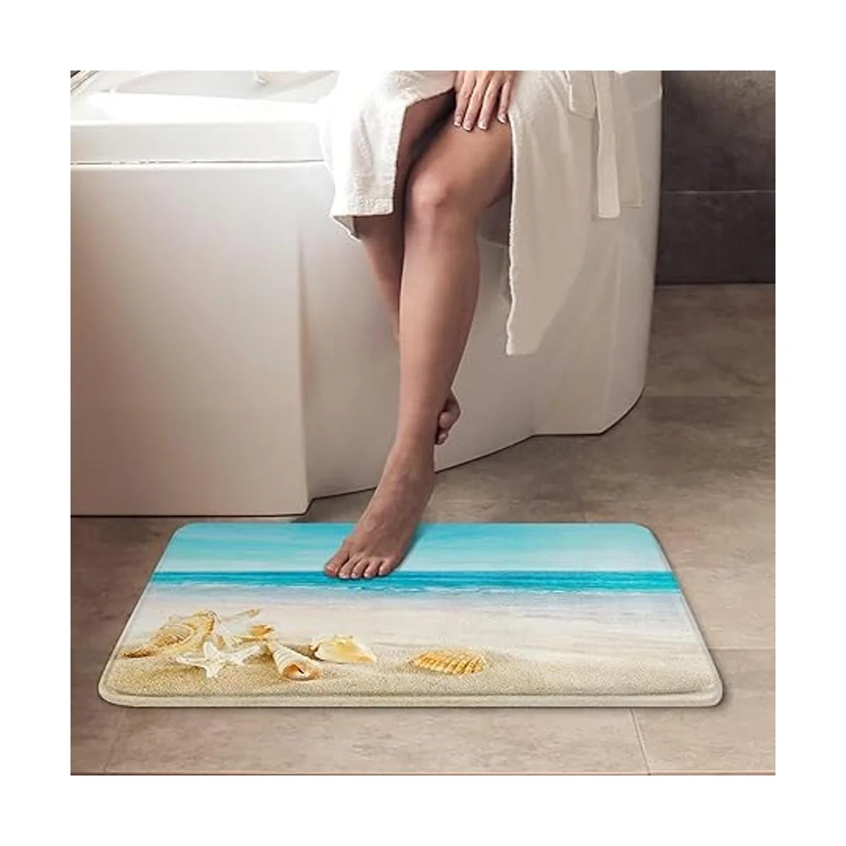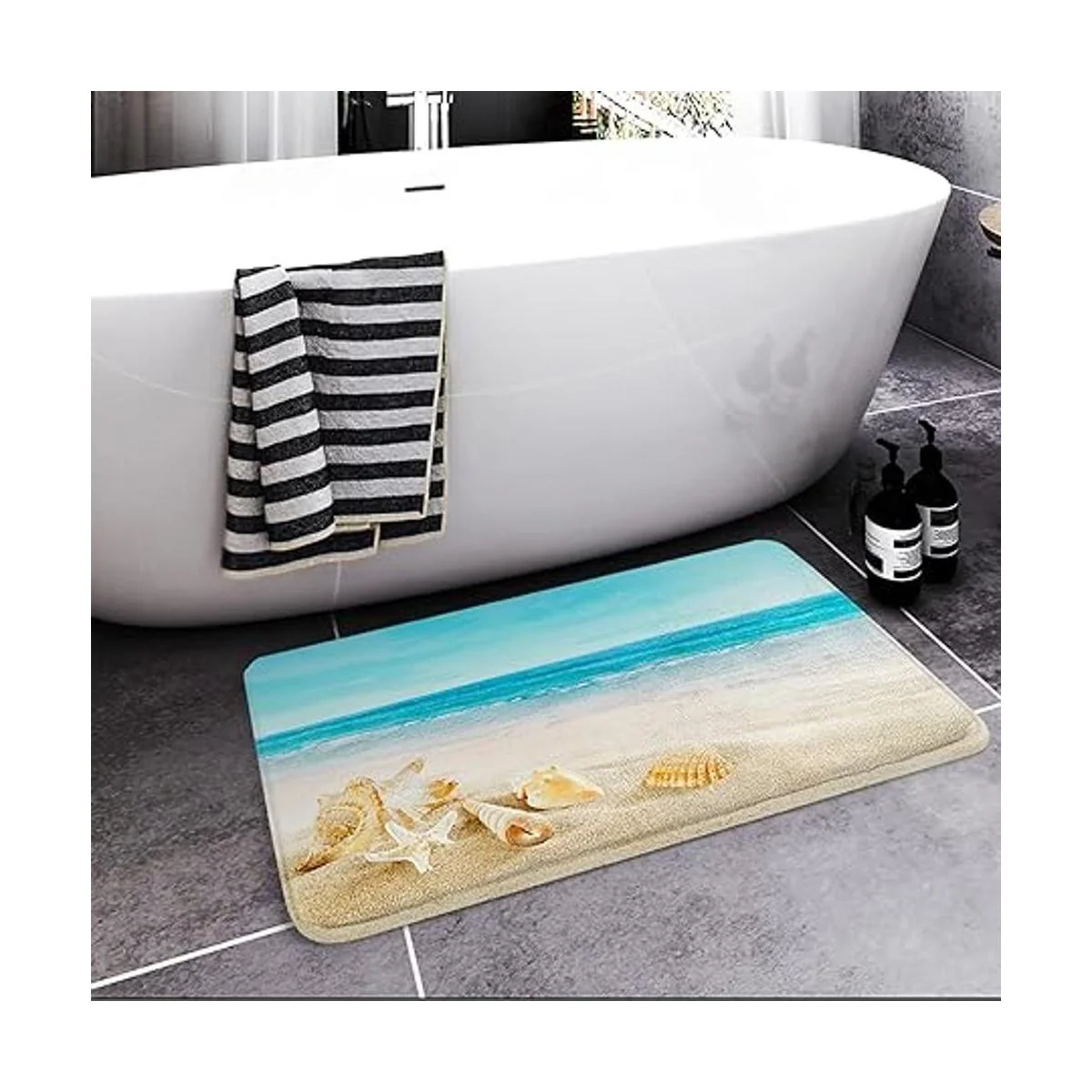 Britimes Tapetes de baño de playa y concha de mar, antideslizantes, diseño de conchas de mar, cubierta lavable, para decoración de baño, 16 x 24 pulgadas 40.64 x 60.96 cm., para cocina, dormitorio e interiores