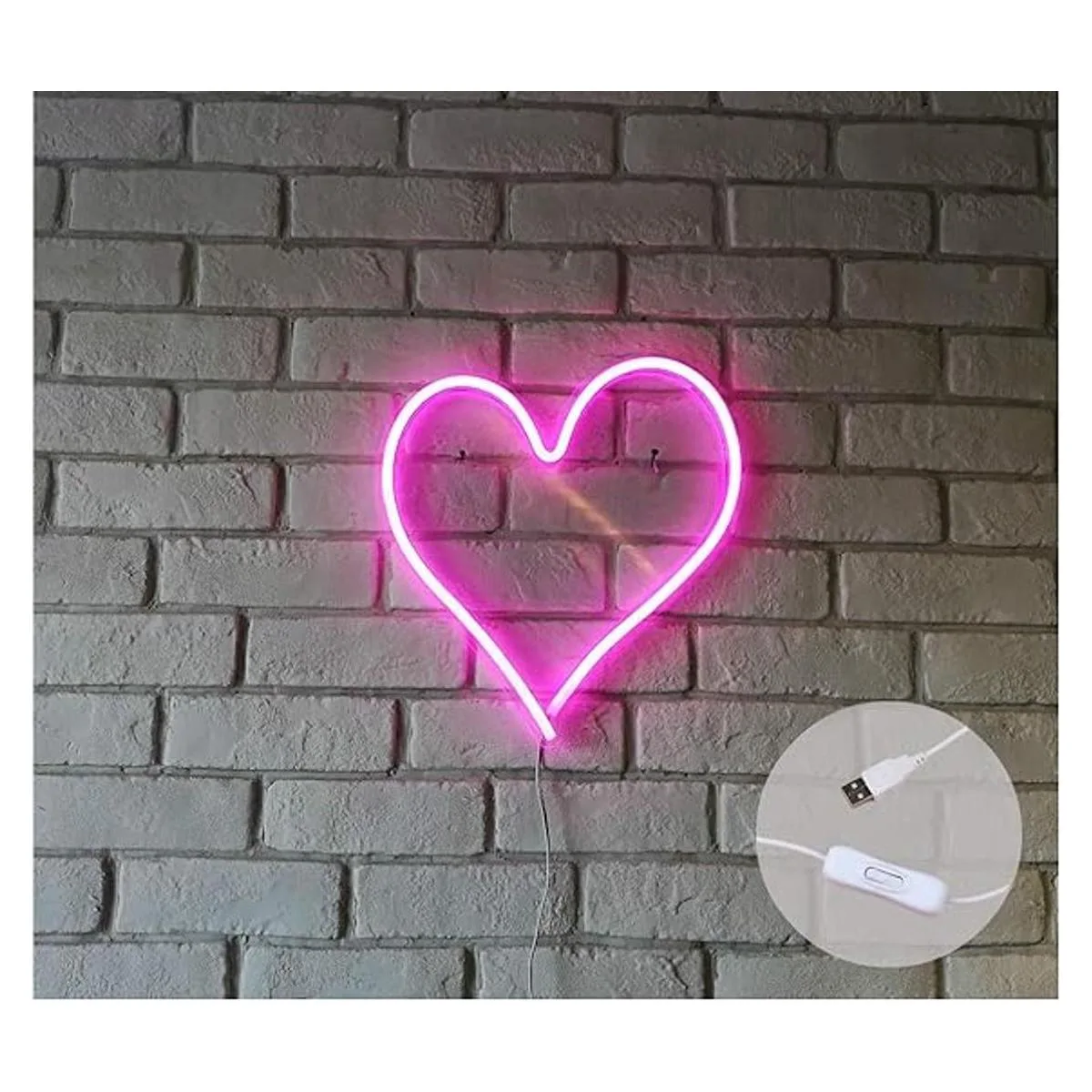 Britrio Letrero de luz de neón LED, 13.4 x 12.6 pulgadas, letrero de neón en forma de corazón, para colgar en la pared, para bar, dormitorio de niños, sala de estar, fiesta, decoración del hogar, luz nocturna de neón alimentada por USB con interruptor de encendidoapagado corazón rosa