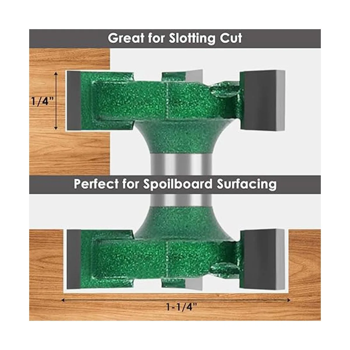 Herramienta versátil para carpintería. Esta broca no solo es especialmente para aplanar losas de madera, resurbar o planear la superficie superior del alerón, sino también para recortar, ranurar o ranurar. Gran herramienta de repuesto para carpintería