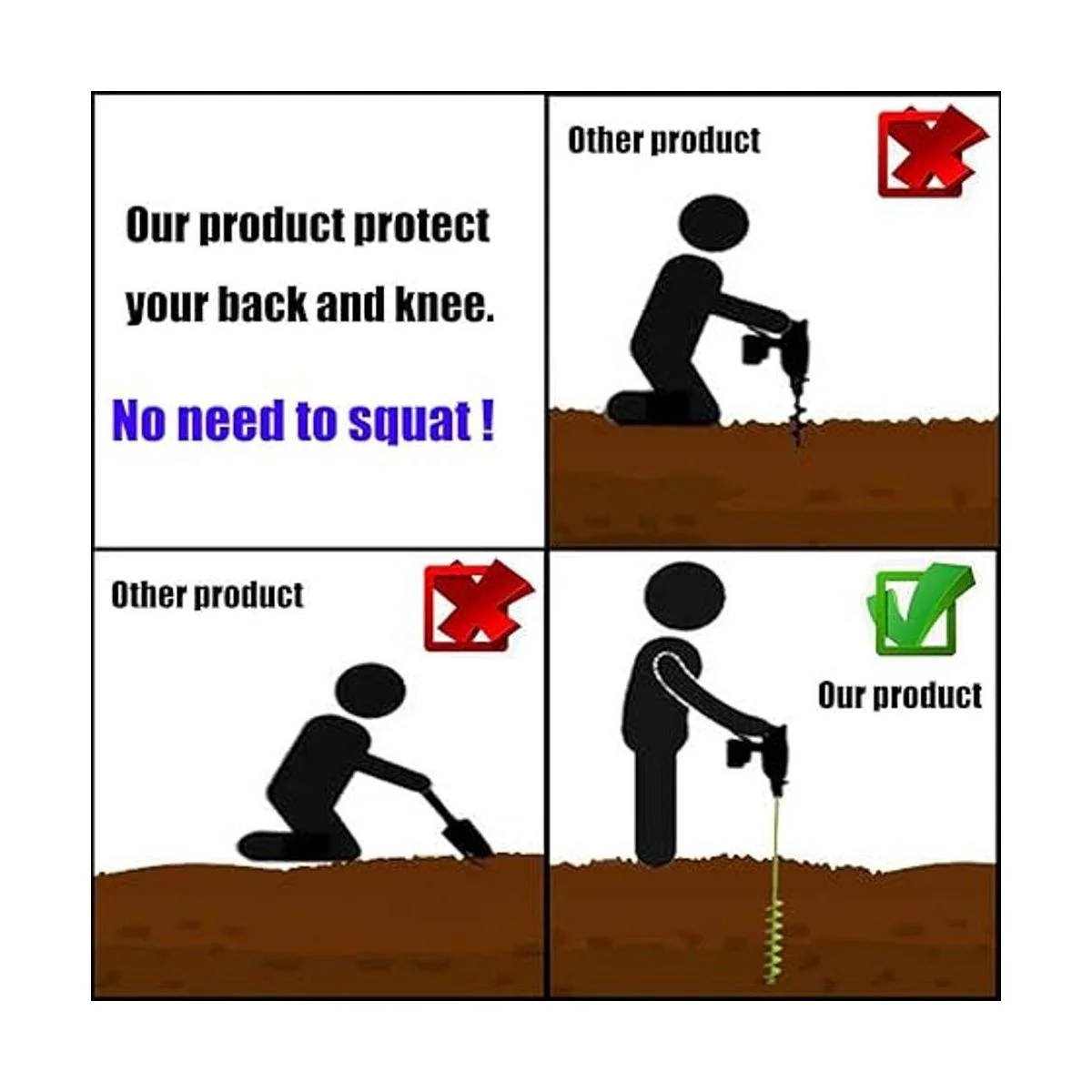 No hay necesidad de sentadillas: nuestra broca de taladro de longitud extendida te permite estar de pie y cavar. No hay necesidad de sentadillas y proteger tu espalda y rodilla. Puede ahorrar mucho esfuerzo para ti en excavaciones masivas. Aporta una mayor capacidad innovadora que la versión antigua en el mercado.