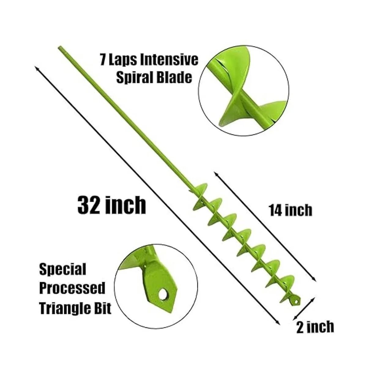 Broca de taladro alargada mejorada de 32 x 2 pulgadas, sin necesidad de excavar agujeros de poste de sentadillas, barril 100 sólido, cuchillas intensivas de longitud extendida, broca de taladro verde resistente para plantar para taladro hexagonal de 38 pulgadas