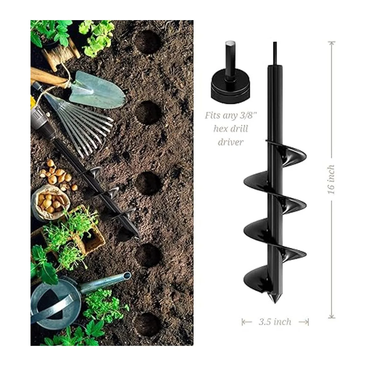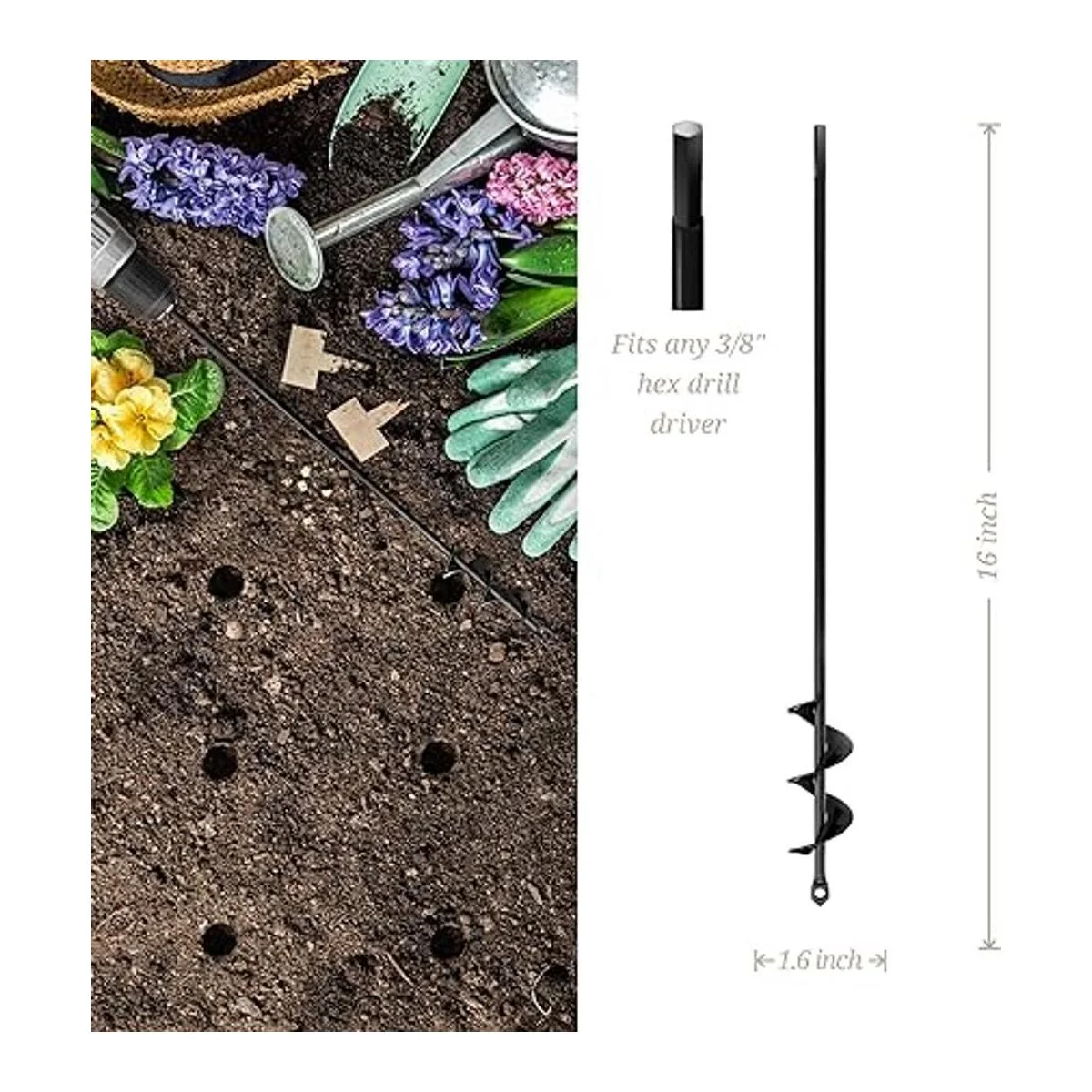 Una herramienta imprescindible para trabajos en el patio: mientras que esta broca en espiral es perfecta para plantar bulbos y plantas de leche, así como triturar malas hierbas y mezclar fertilizantes, no solo se limita al trabajo de jardín. Excava fácilmente agujeros para postes de vallas, luces de suelo, antorchas al aire libre y paraguas, todo con una sola herramienta.