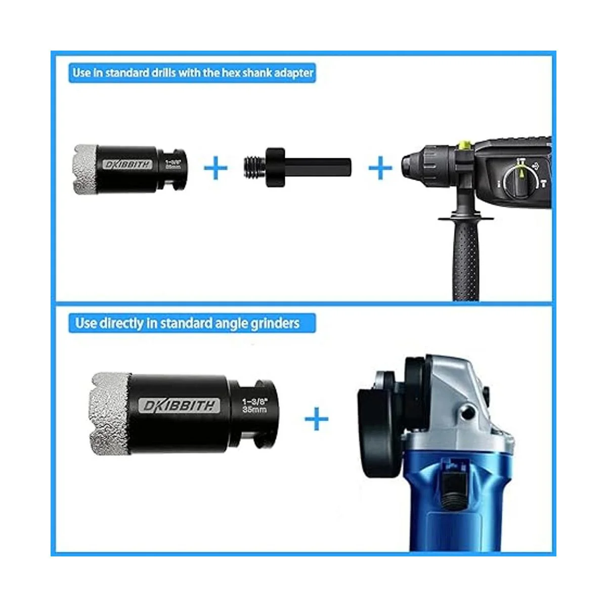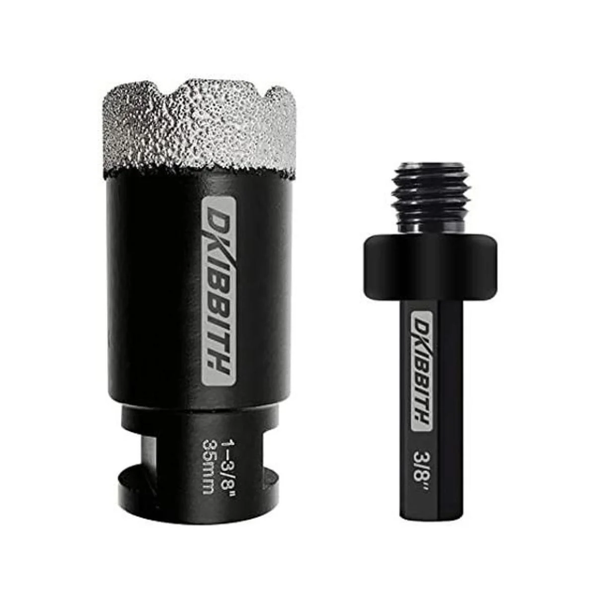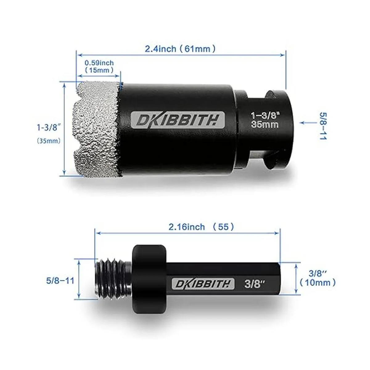 Brocas de núcleo de diamante seco de 13/8 pulgadas (1.378 in) para azulejos de cerámica de porcelana, ladrillo de mármol, sierra de agujero soldada al vacío con rosca de 5/811 más adaptador de vástago hexagonal de 3/8 pulgadas