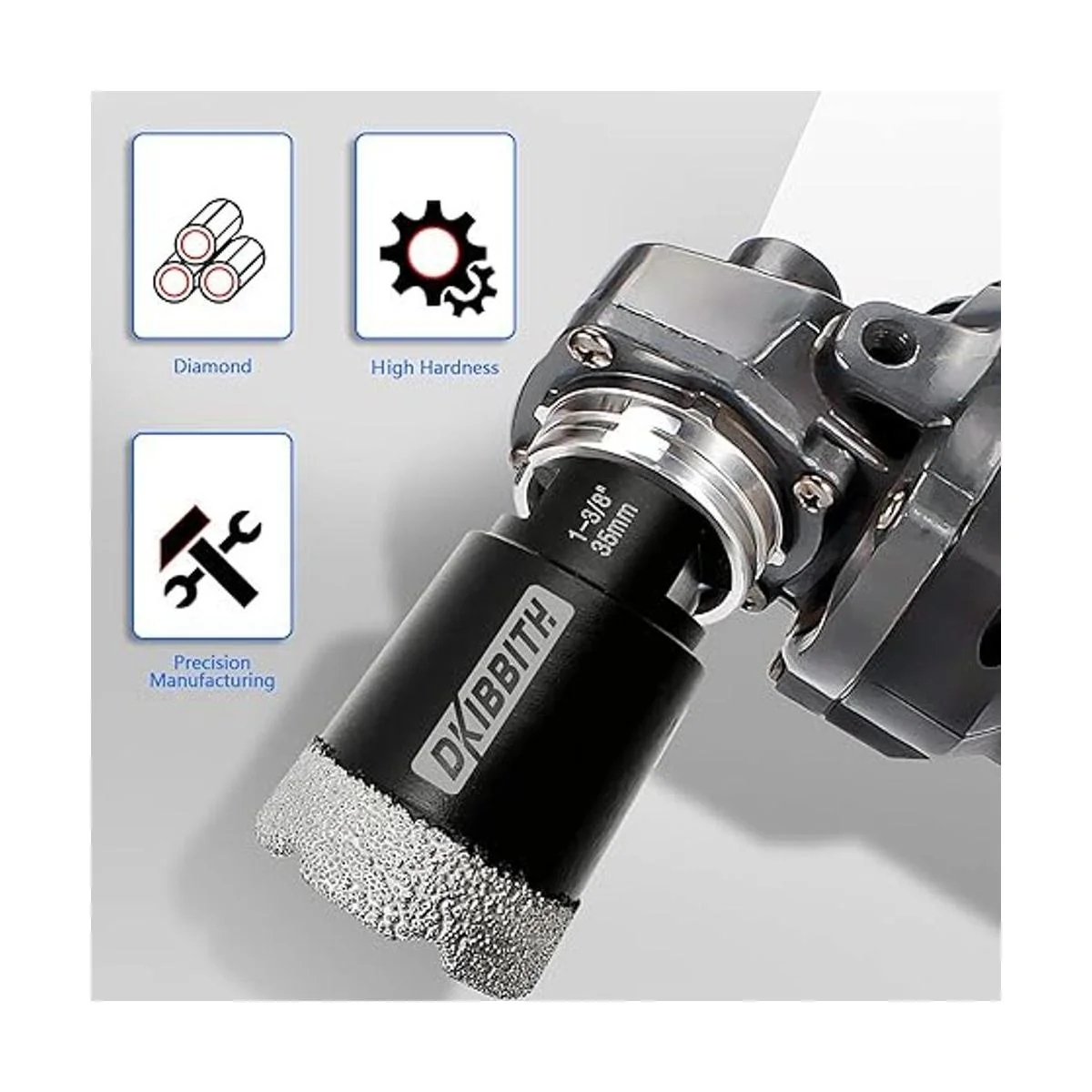 Brocas de núcleo de diamante seco de 138 pulgadas 1.378 in para azulejos de cerámica de porcelana, ladrillo de mármol, sierra de agujero soldada al vacío con rosca de 5811 más adaptador de vástago hexagonal de 38 pulgadas