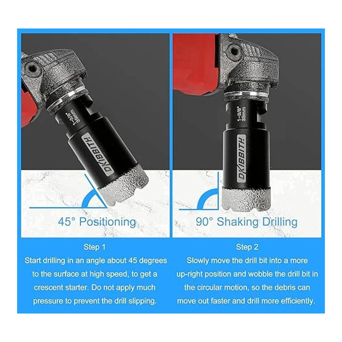 Proyectos compatibles: utiliza nuestra broca de diamante soldada al vacío para secar o húmedo a través de porcelana, azulejos, granito, mármol, piedra, mampostería, bloque, ladrillo y hormigón no reforzado; no se recomienda para hormigón con refuerzo o materiales duros.