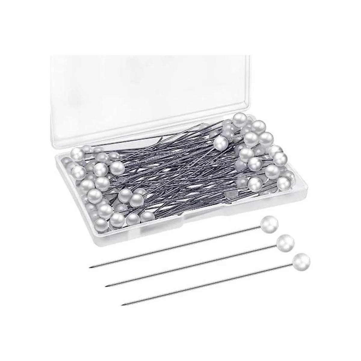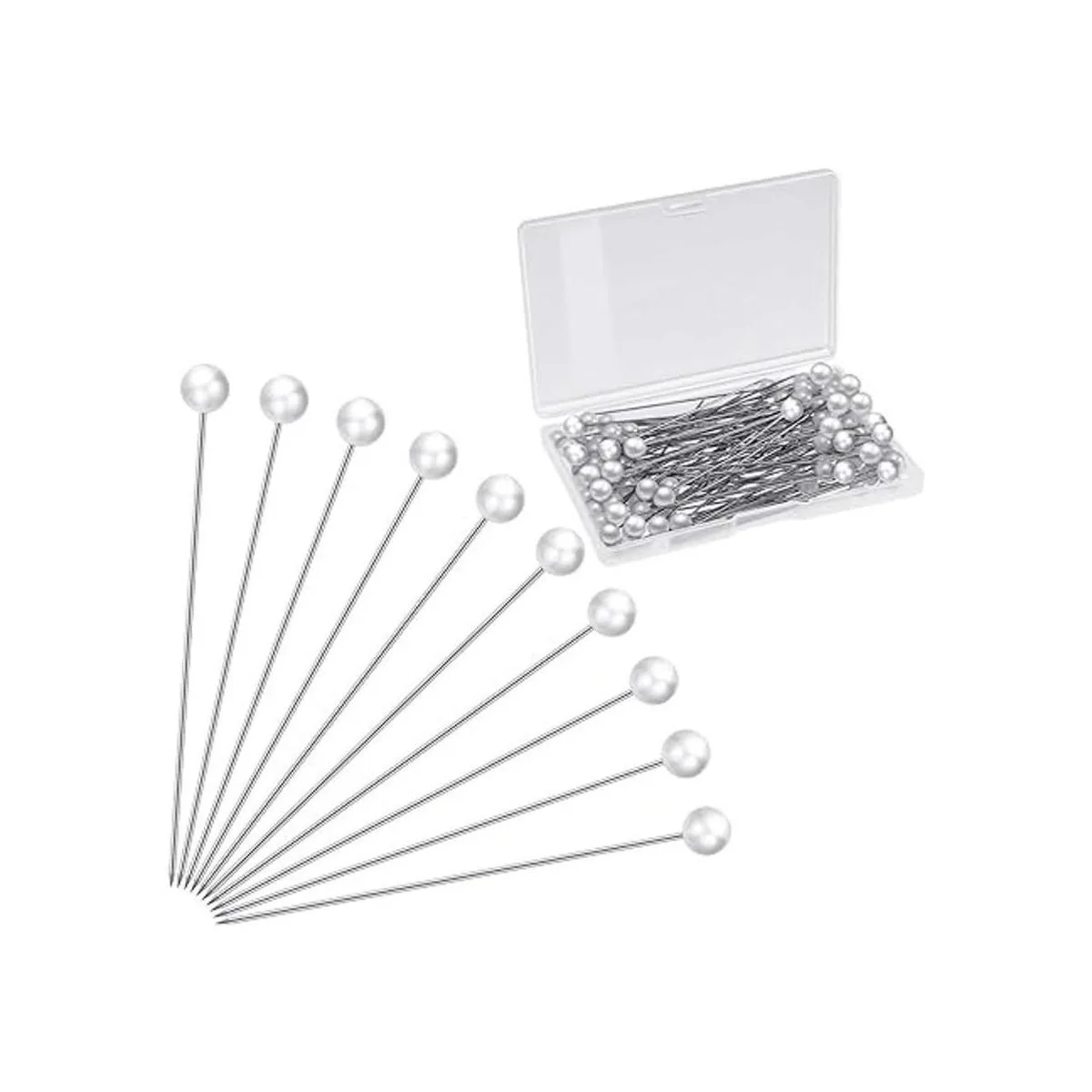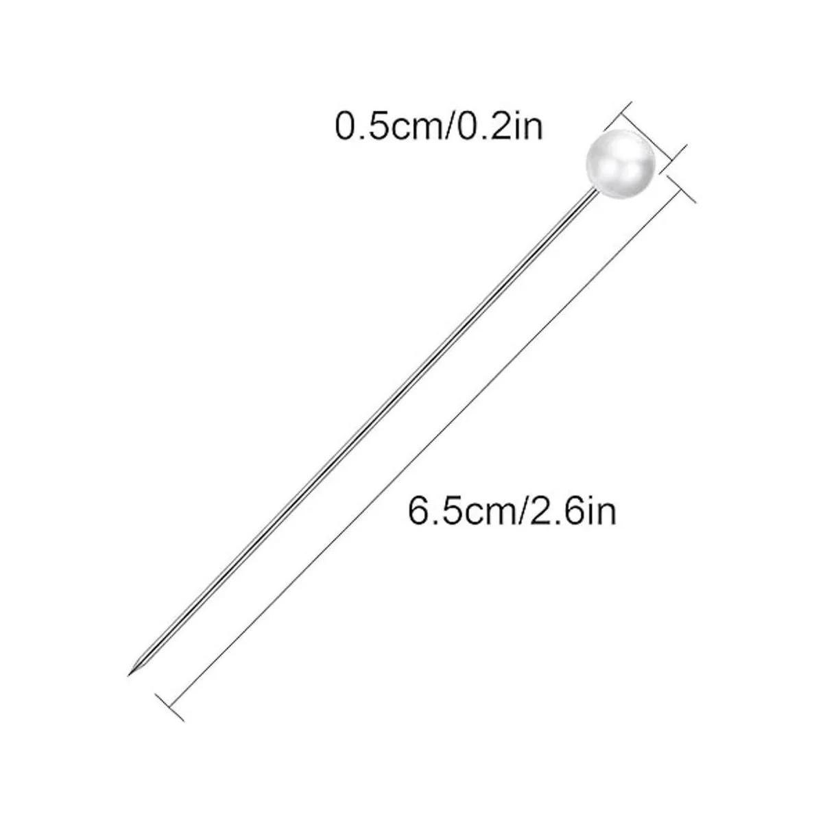 Medidas: la longitud total de cada pin es de aproximadamente 2.6 in, y el diámetro de la perla sintética mide aproximadamente 0.197 in, tamaños adecuados para varias decoraciones, fácil y cómodo de almacenar en la caja