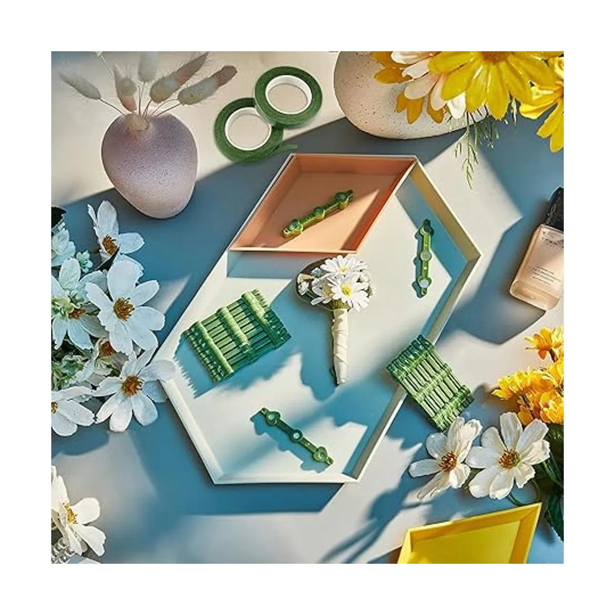 Broches de ramillete con imanes florales pequeños, imanes florales y 2 rollos de 12 pulgada x 30 yardas, cinta de envoltura floral verde para boda, novia, ramo de flores hechas a mano y manualidades 10 pares
