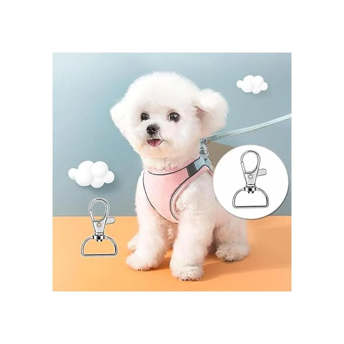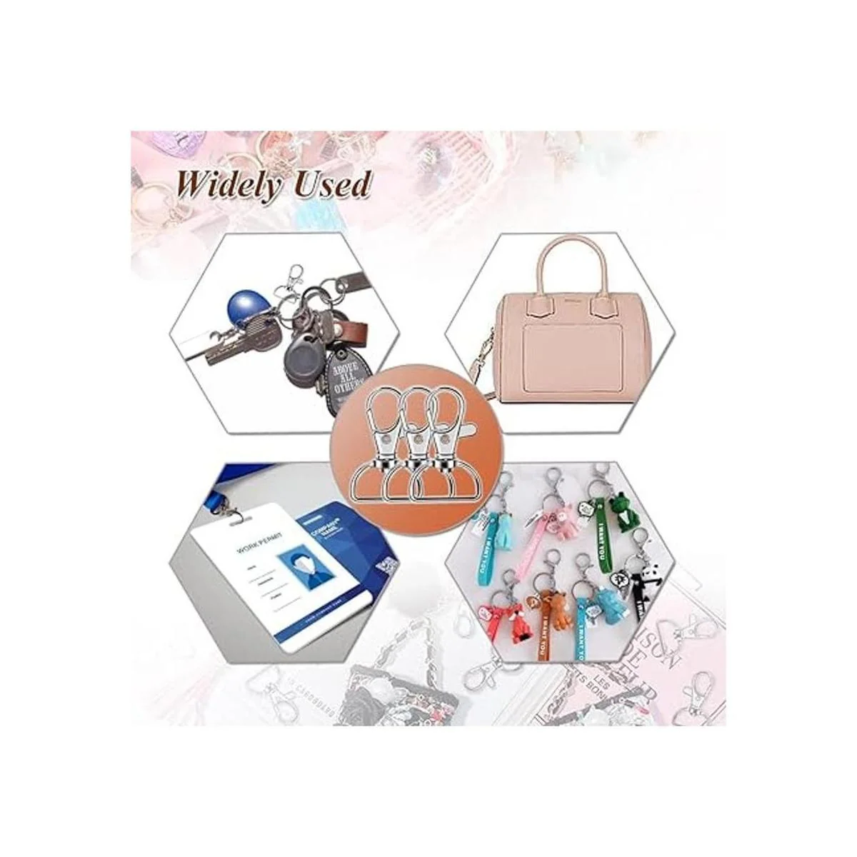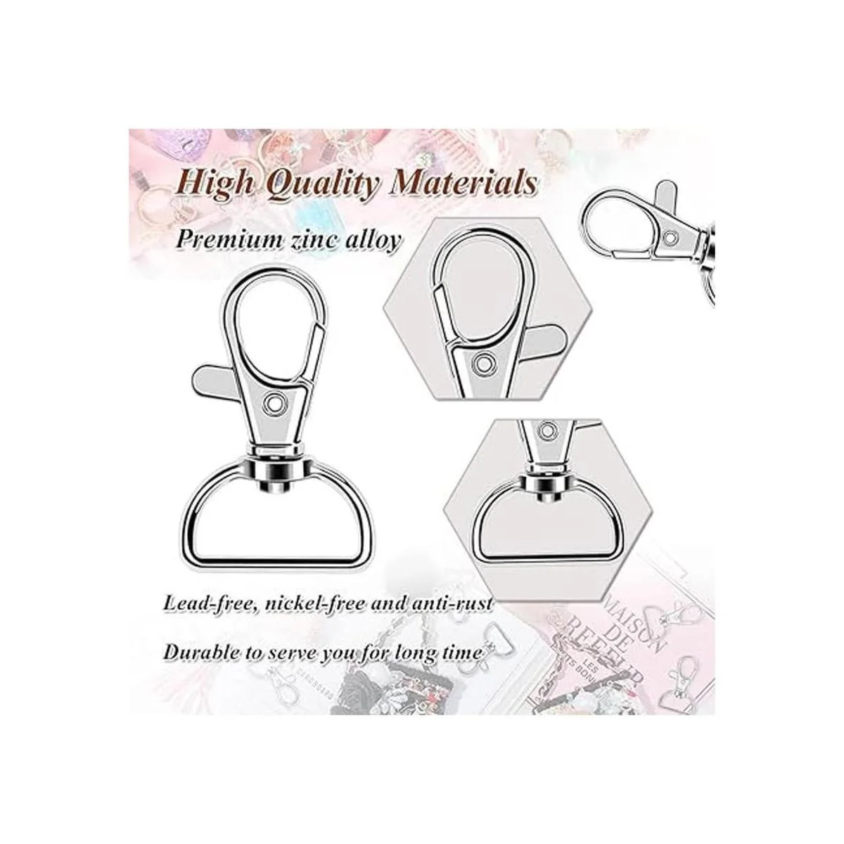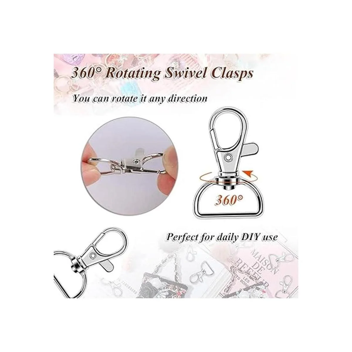 Juego de clips de gancho giratorios multiusos: estos ganchos de clip para llavero con anillos en D son muy ampliamente utilizados, se pueden aplicar ampliamente para fijar a mochila, bolso, pulsera, collar, carteras, collares de perro, tobillera, cadena de suéter y más, también son ideales para hacer joyas, proyectos de arte para niños y otros objetos pequeños, definitivamente un artículo imprescindible para los amantes del bricolaje