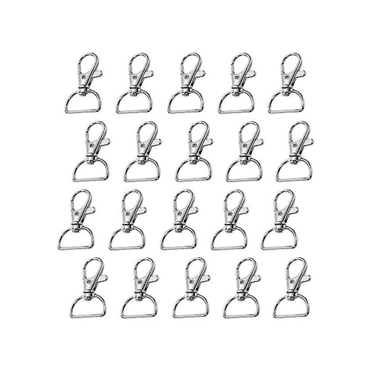 Broches giratorios con gancho a presión, cierre de pinza de langosta de metal de 34 pulgadas para hacer joyas, 20 ganchos de clip para llavero con anillos en D para bolsos, herramientas de costura, proyectos de manualidades, plata 20 piezas plateadas