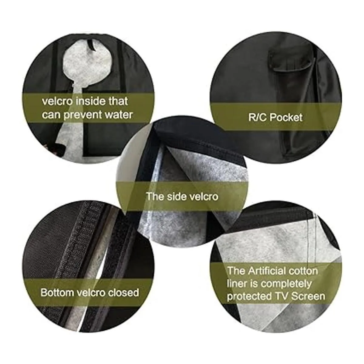 Material de alta calidad excelente: 100 resistente al agua. Material: poliéster 600D resistente y forro de algodón artificial. El forro de algodón artificial está completamente protegido para la pantalla de la televisión.
