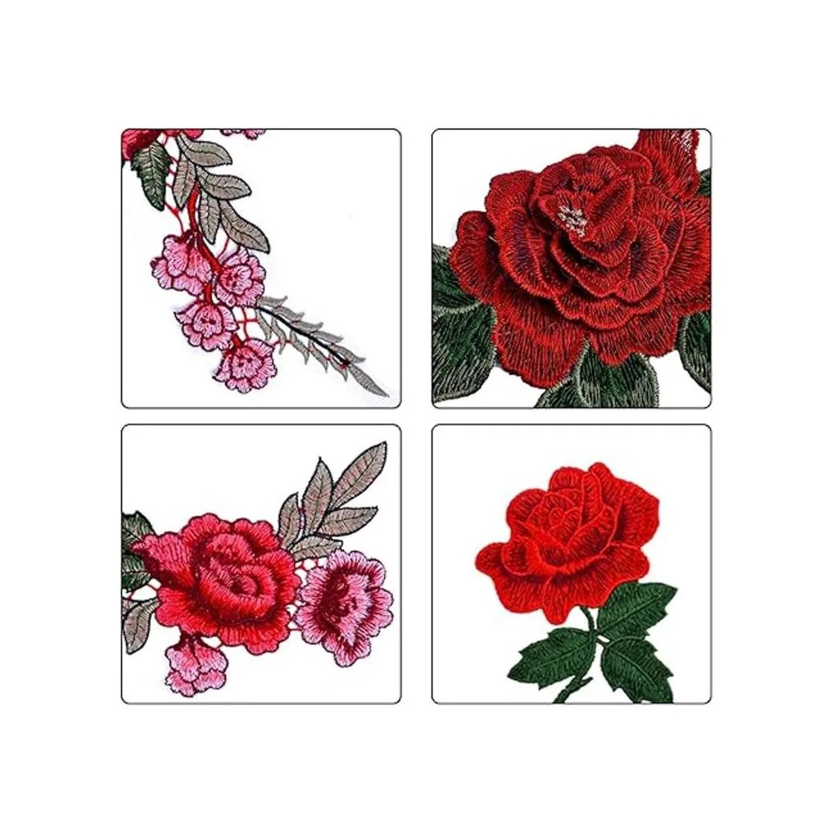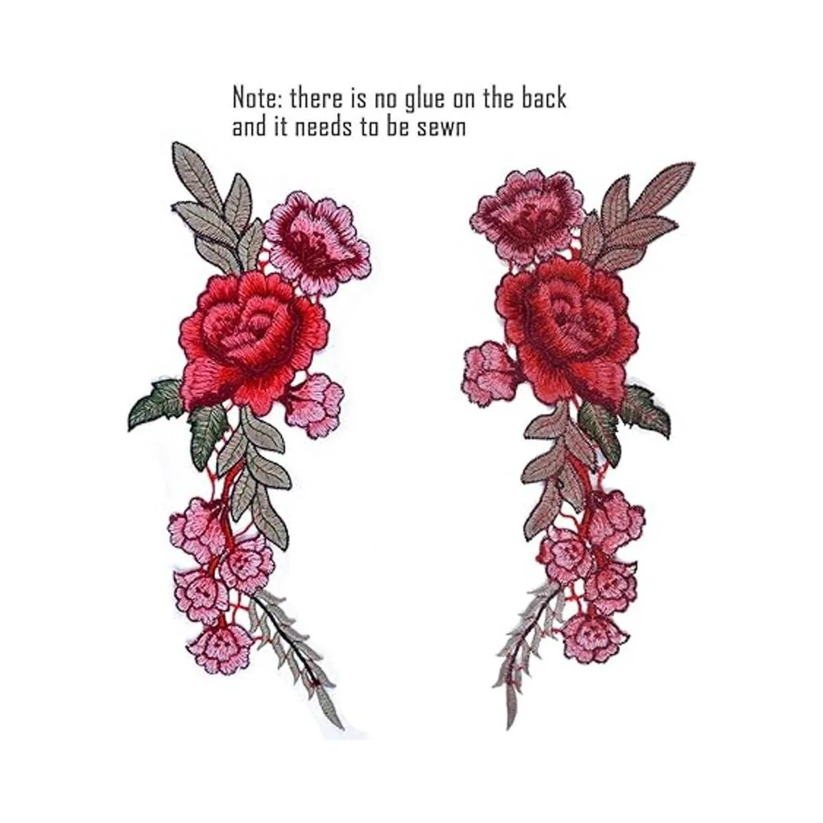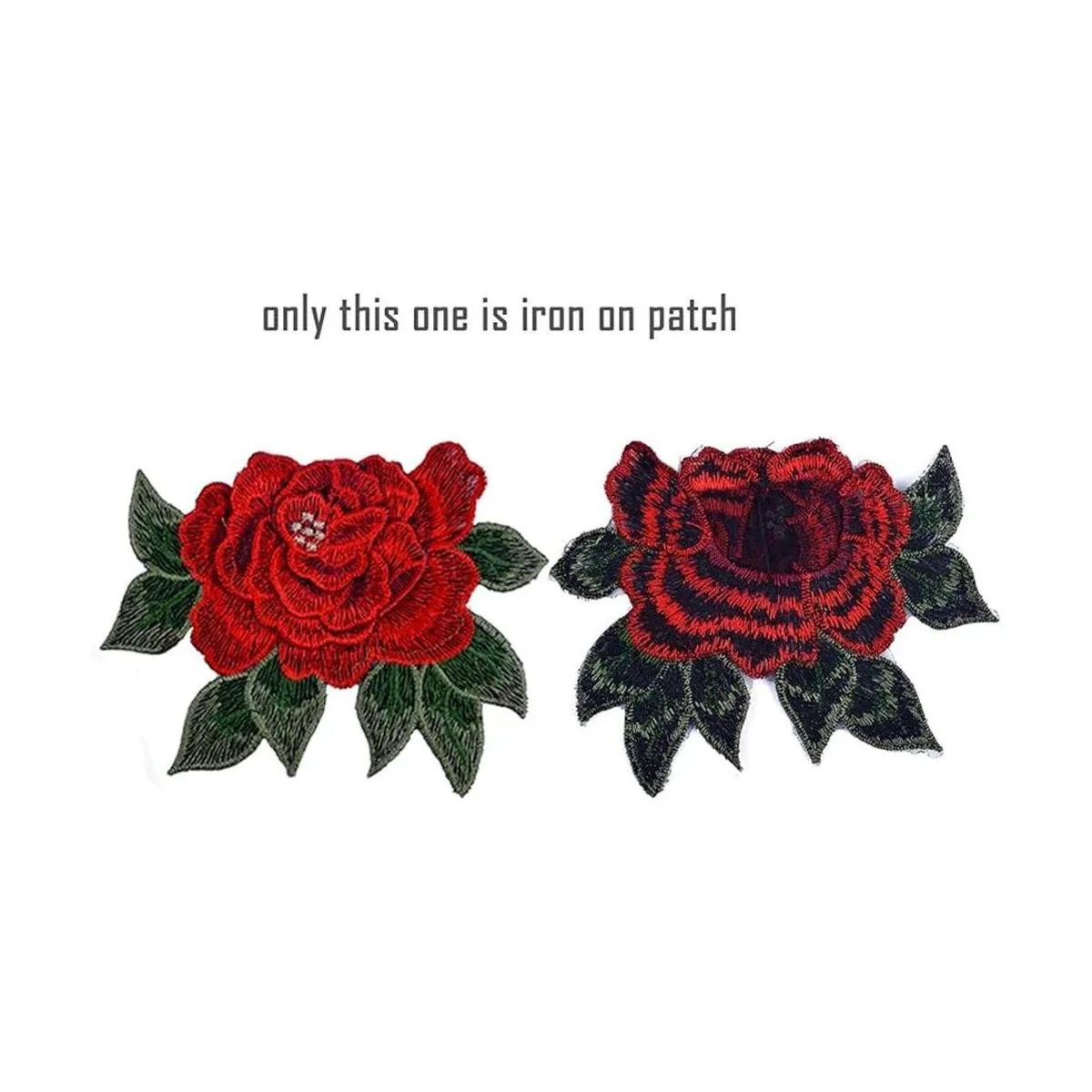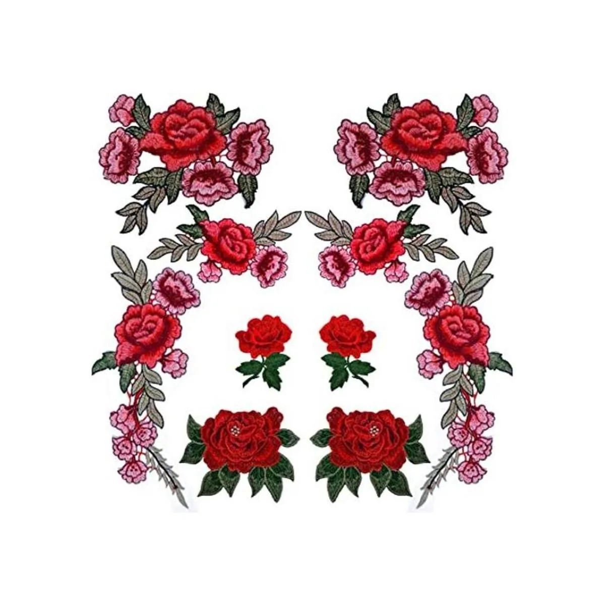 BronaGrand 10 piezas de 5 pares de parches bordados de flores de rosa, parches para coser en ropa, jeans, costura