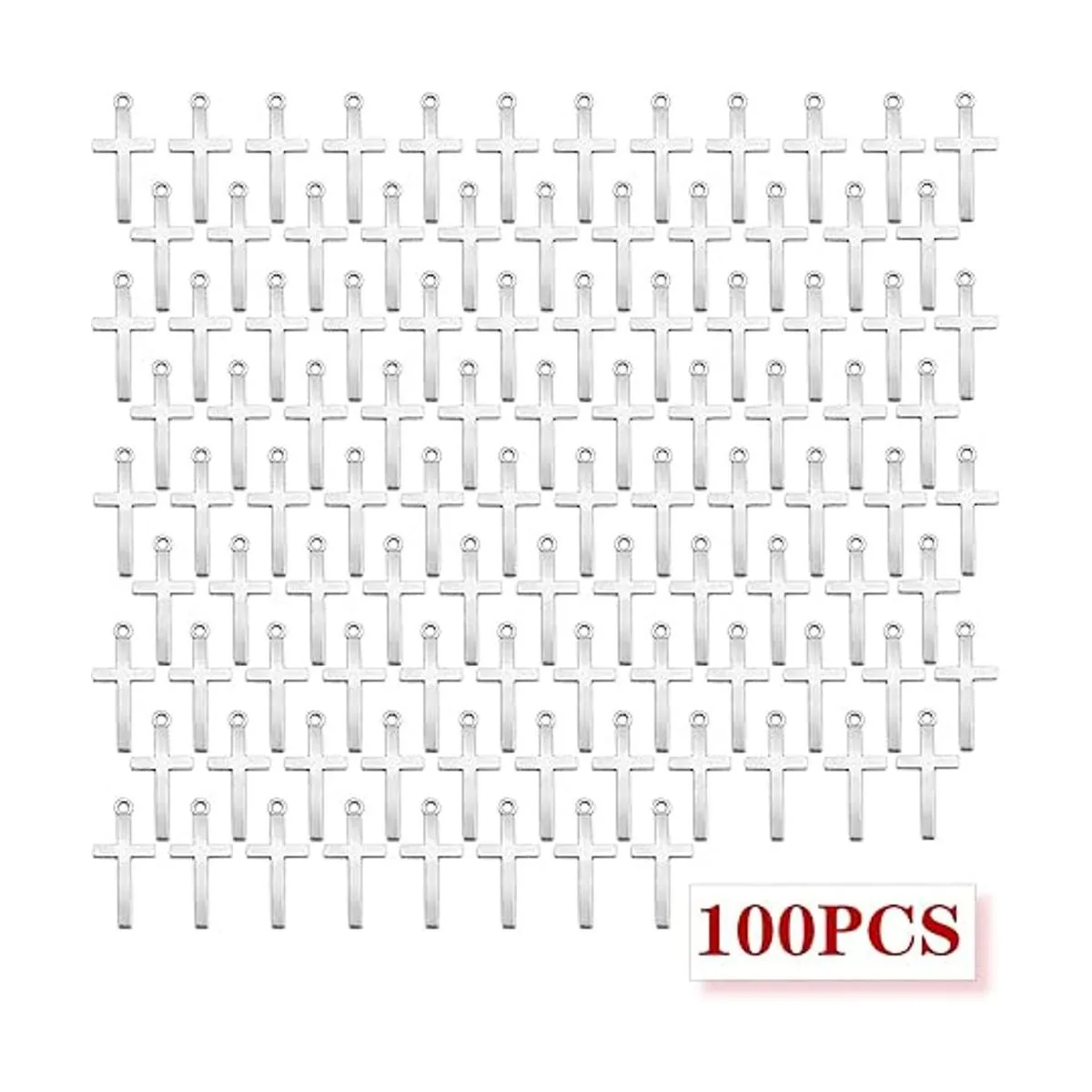 BronaGrand 100 abalorios de crucifijo de plata antigua, aleación vintage, colgantes de cruz religiosa, suministros de manualidades para manualidades, collar, pulsera, llaveros, joyería