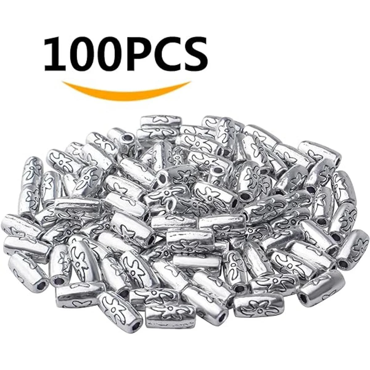 BronaGrand 100 cuentas espaciadoras tibetanas de plata antigua, cuentas espaciadoras de aleación de tubo de cuentas sueltas espaciadoras de cuentas para bricolaje, joyas, manualidades, búsqueda