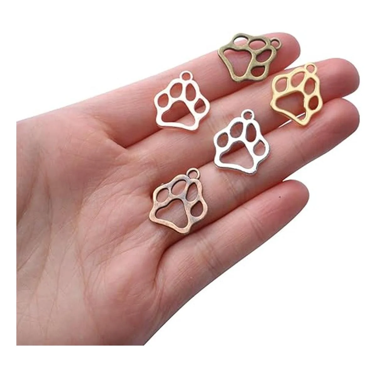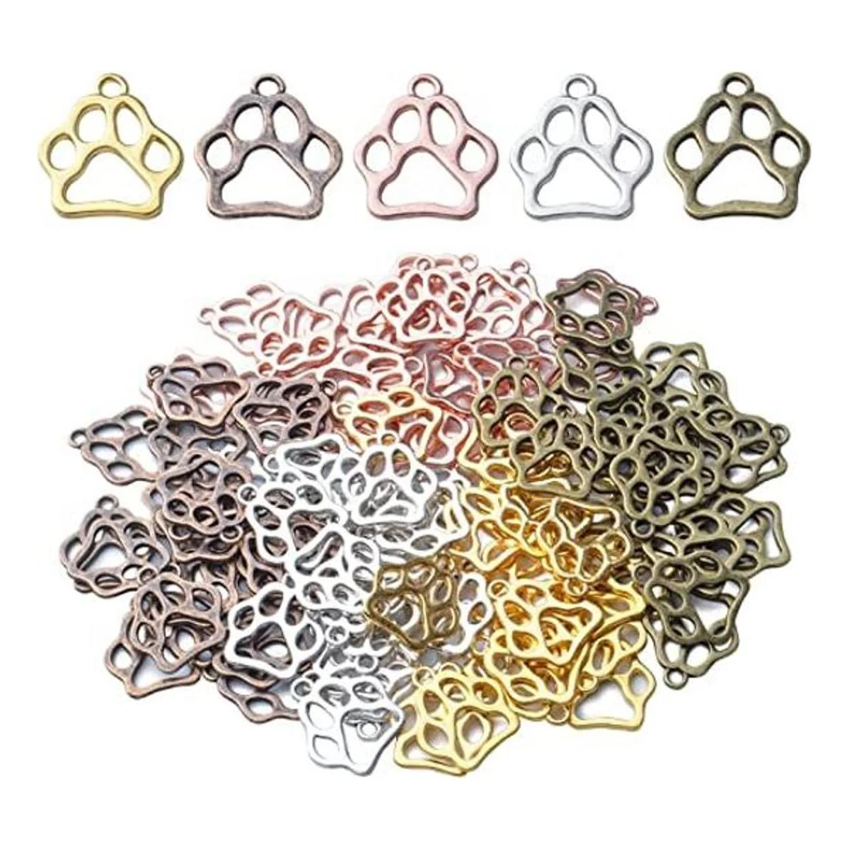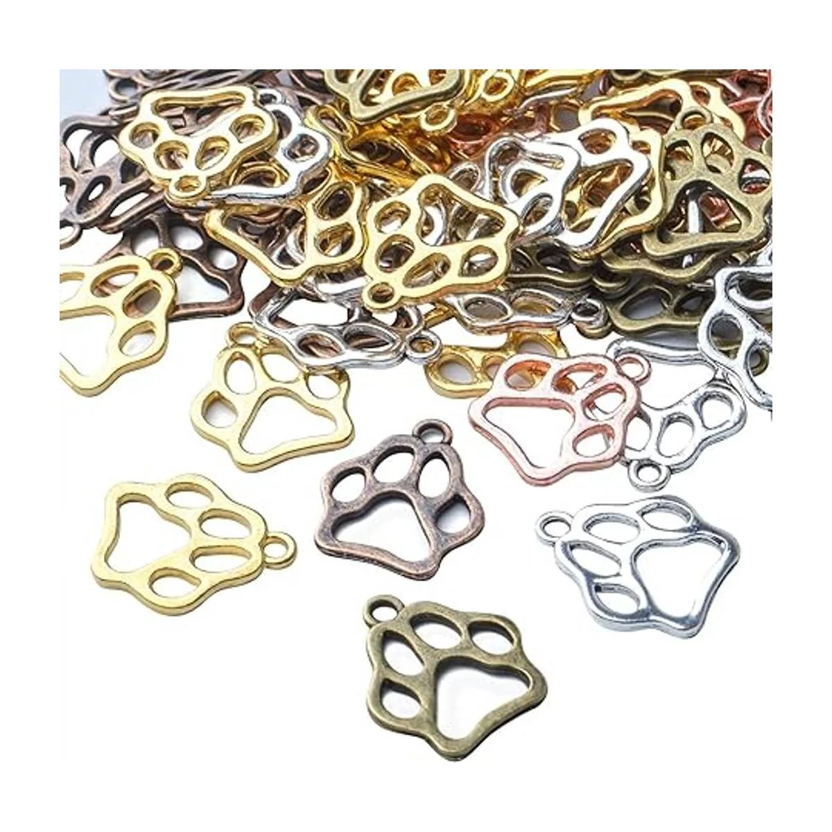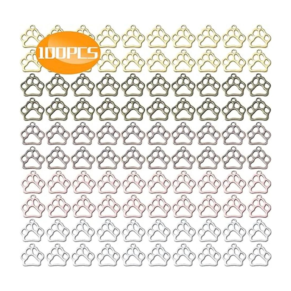 BronaGrand 100 dijes de pata de animal de aleación, oso, gato, perro, pata, colgantes, joyería para aretes, pulseras, bricolaje y fabricación de joyas, Cobre