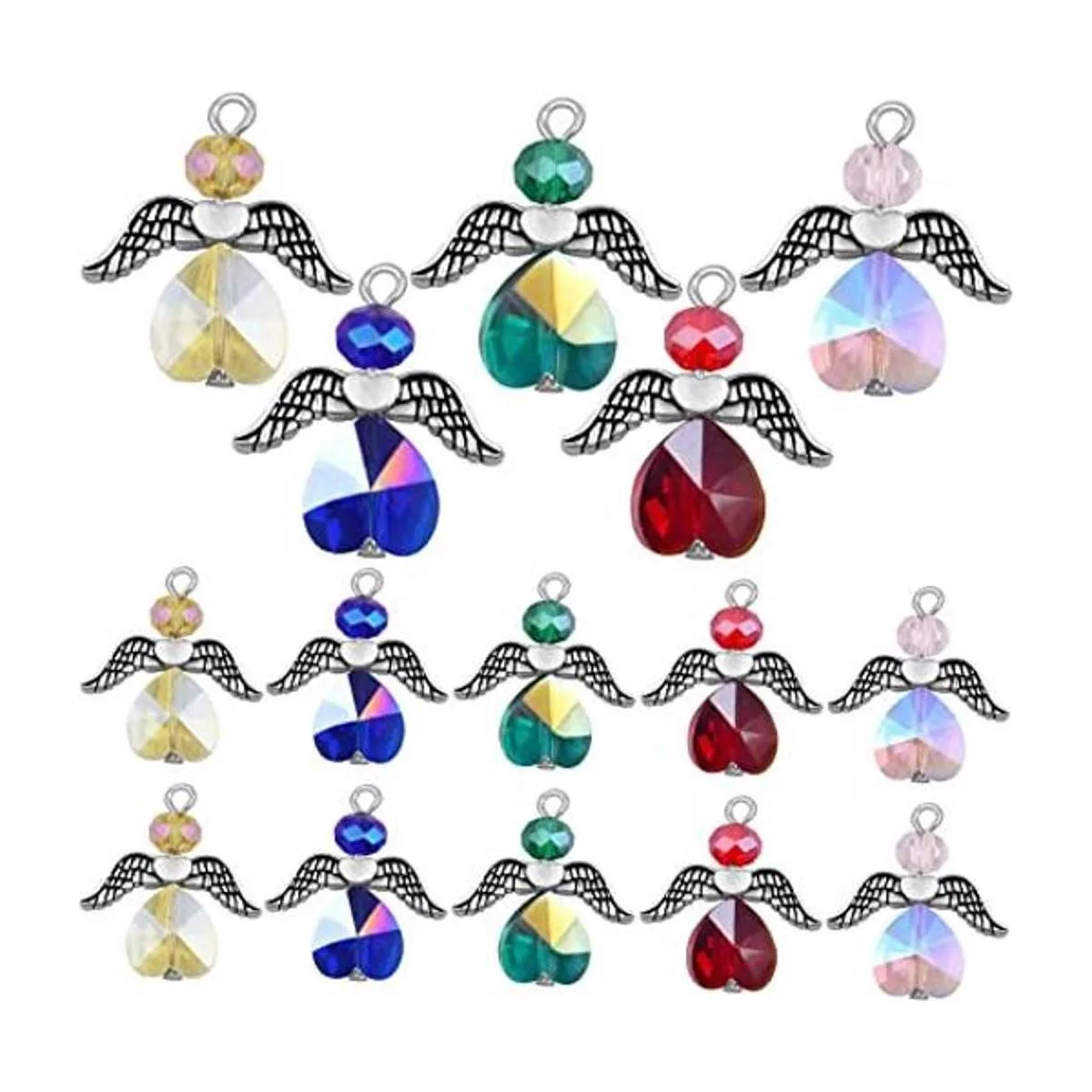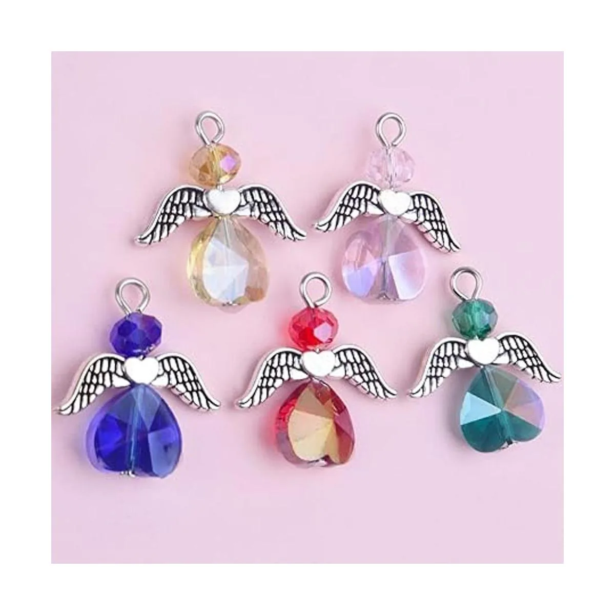 BronaGrand 20 dijes de ala de ángel, colgantes de aleación de ángel de la guarda, colgantes de hadas de cristal colorido, forma de corazón, alas colgantes para hacer joyas, decoración hecha a mano