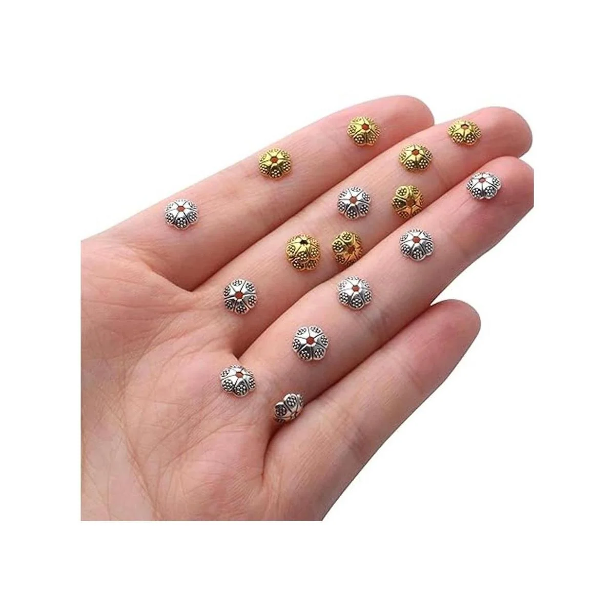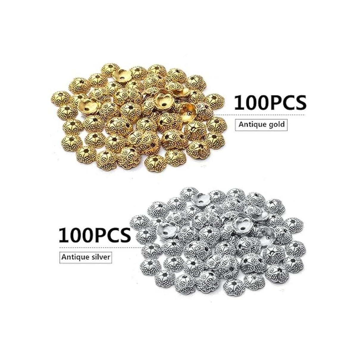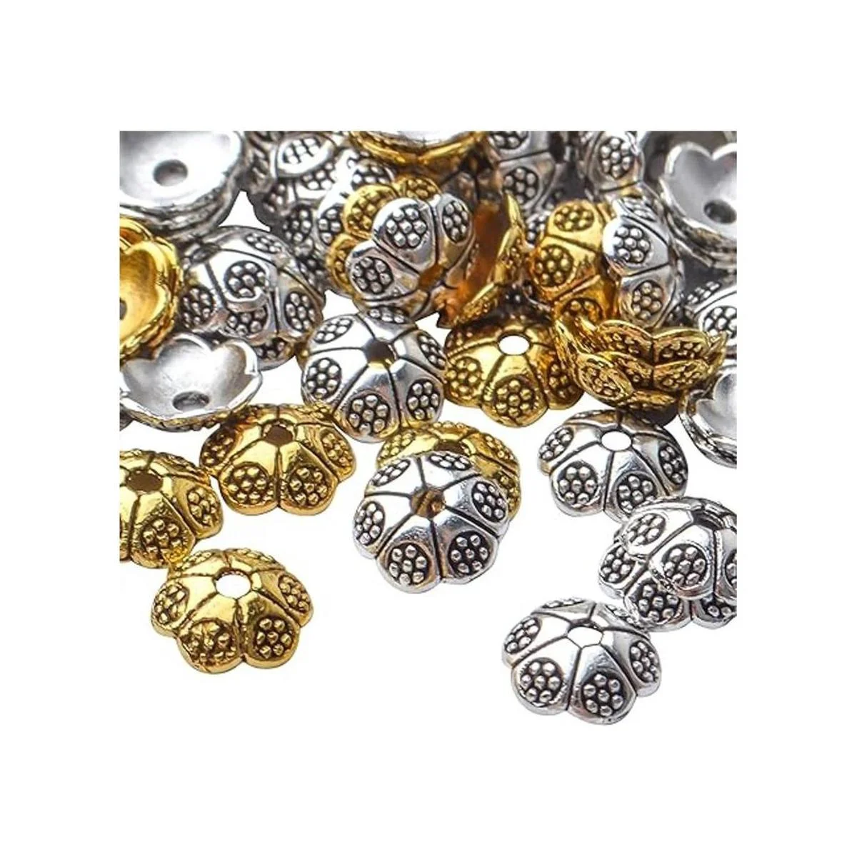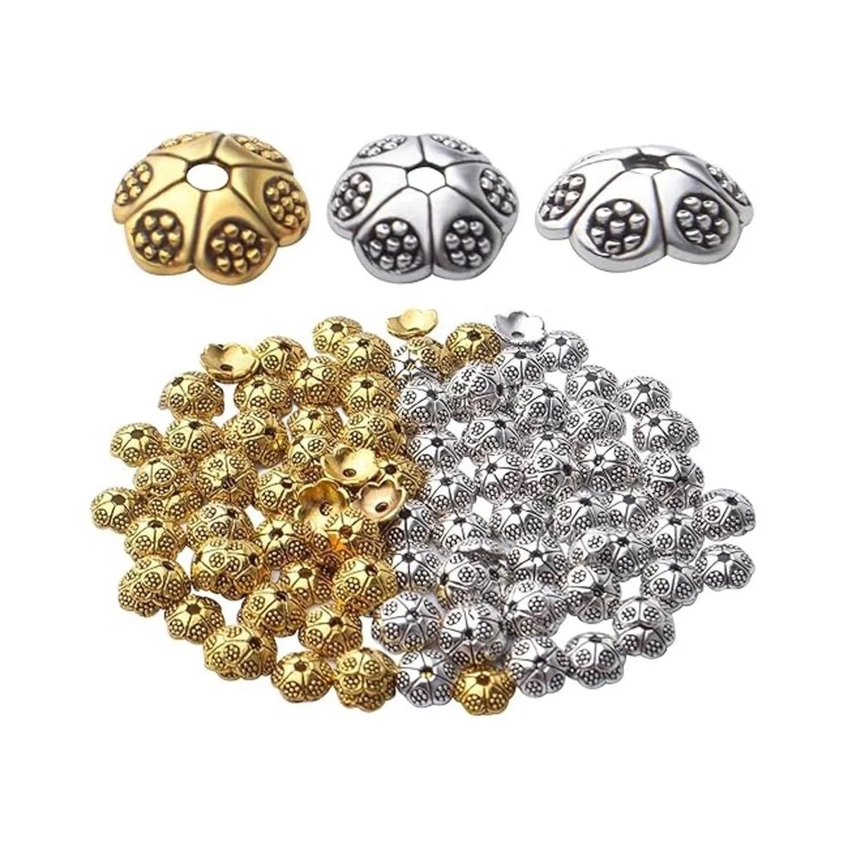 BronaGrand 200 tapas de cuentas de flores de aleación tibetana, tapas de cuentas espaciadoras, tapas de cuentas de joyería para bricolaje, pulseras, collares, aretes, suministros de fabricación de joyas