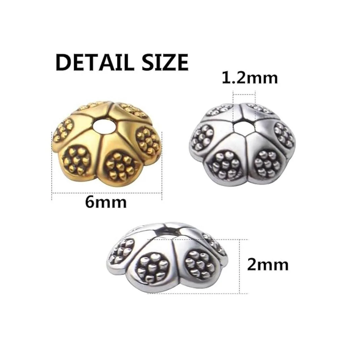 Diseño de flores: estas tapas de cuentas están diseñadas en forma de flor, elegantes y delicadas, cada una de las tapas de flores está tallada con patrón. Diseño sofisticado e ideal que añade detalles llamativos que puedes llevar en todas partes.