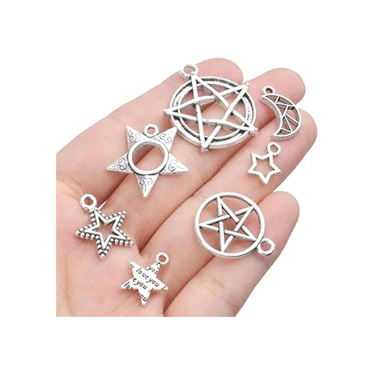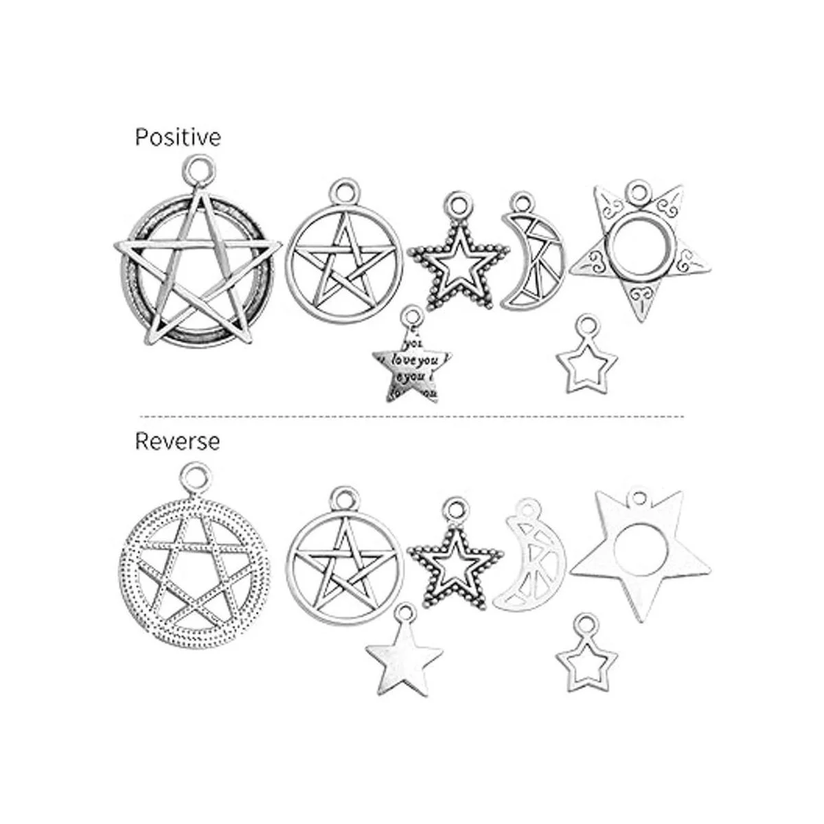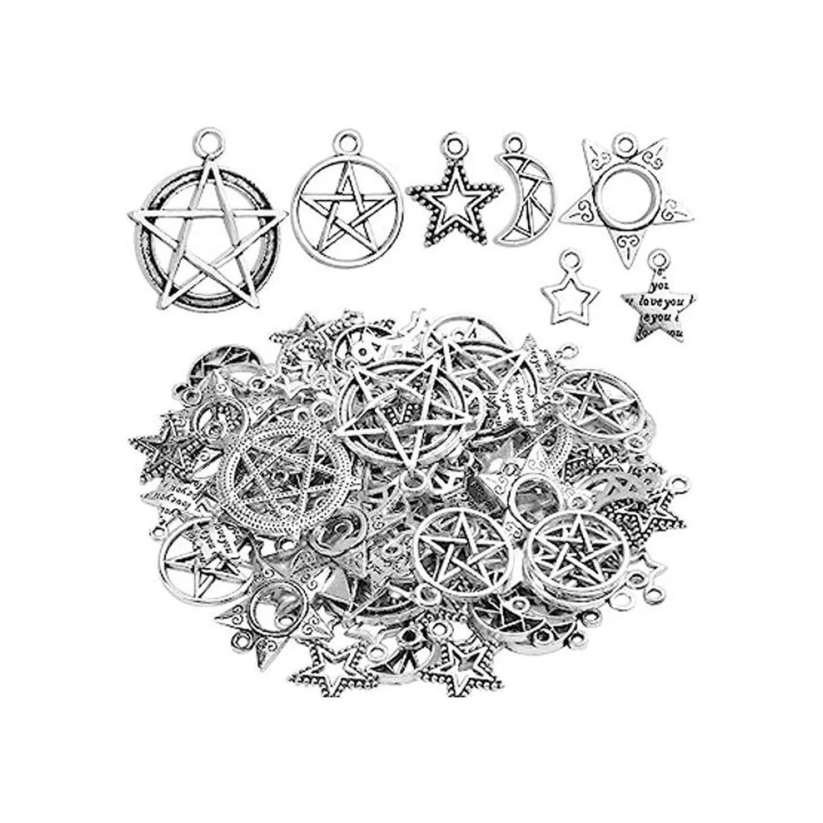 BronaGrand 3.53 oz 80150 piezas Dijes mixtos de luna y estrellas de aleación antigua para collares, manualidades, Plata