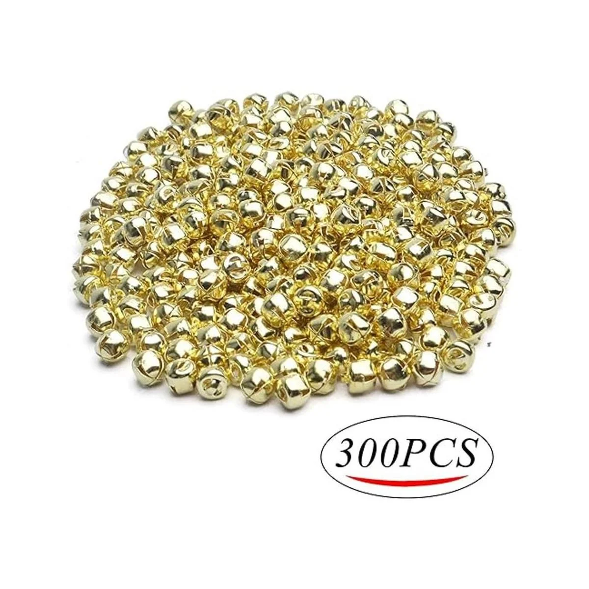 BronaGrand 300 cascabeles cascabeles de 0.236 in para manualidades a granel para decoración de festivales de Navidad, decoración del hogar, oro