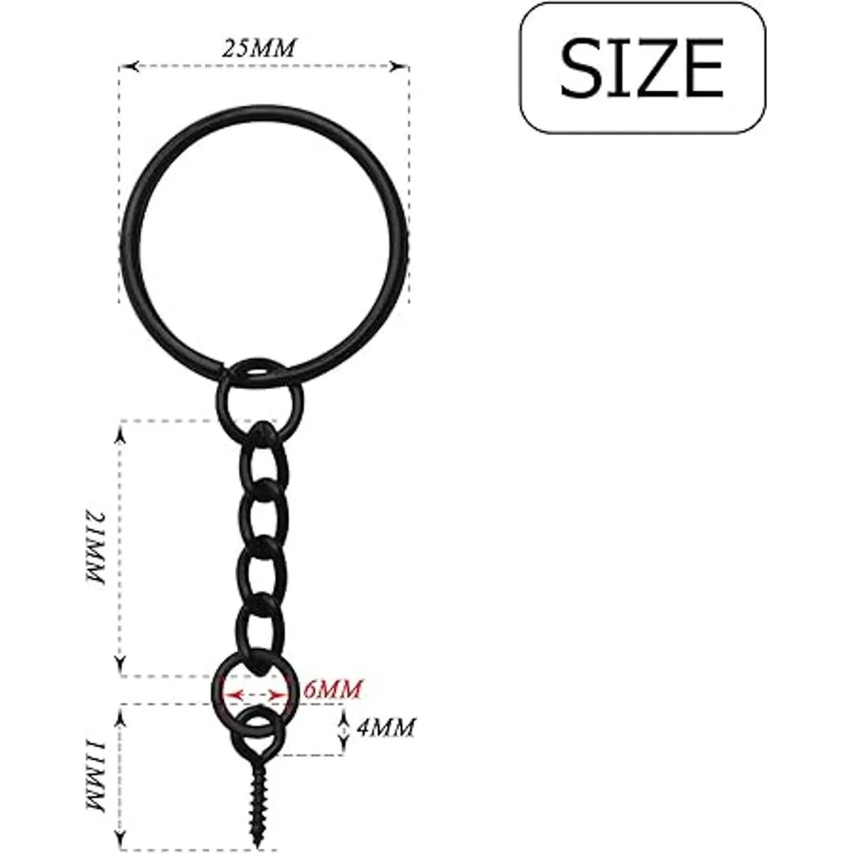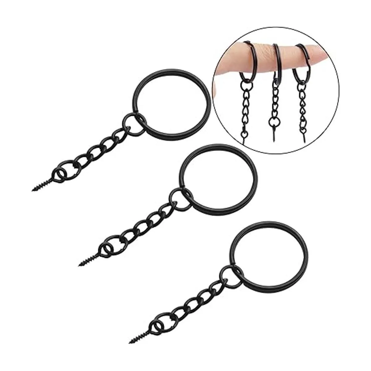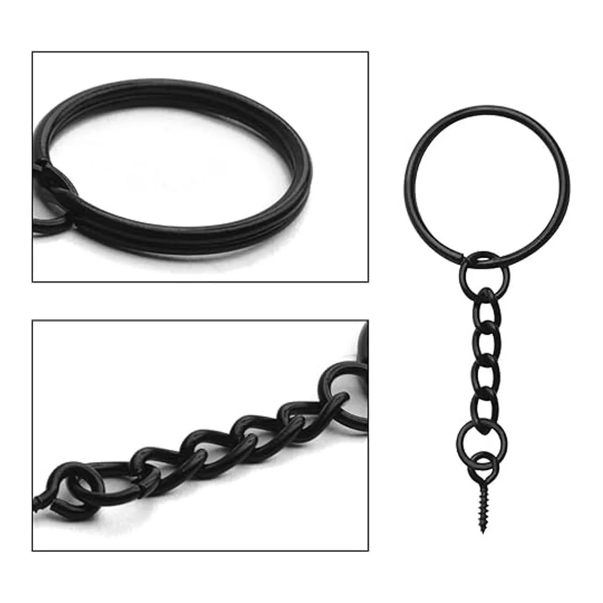 BronaGrand 50 llaveros divididos de 0.984 in con cadena extensible y pasador de ojo de tornillo de 0.472 in para hacer abalorios, color negro