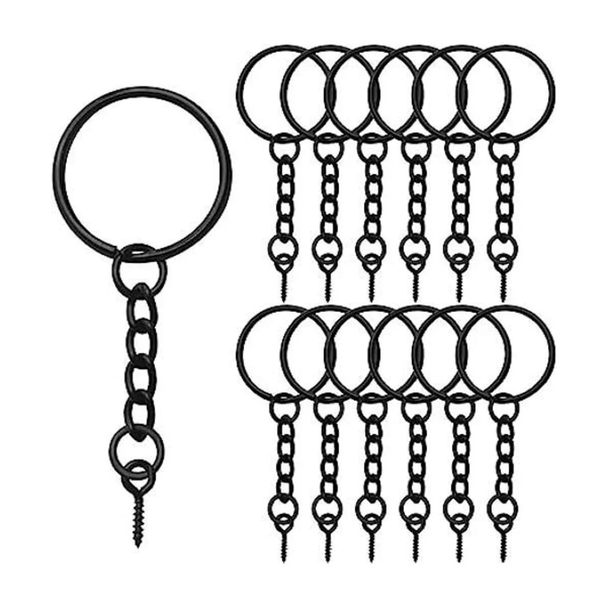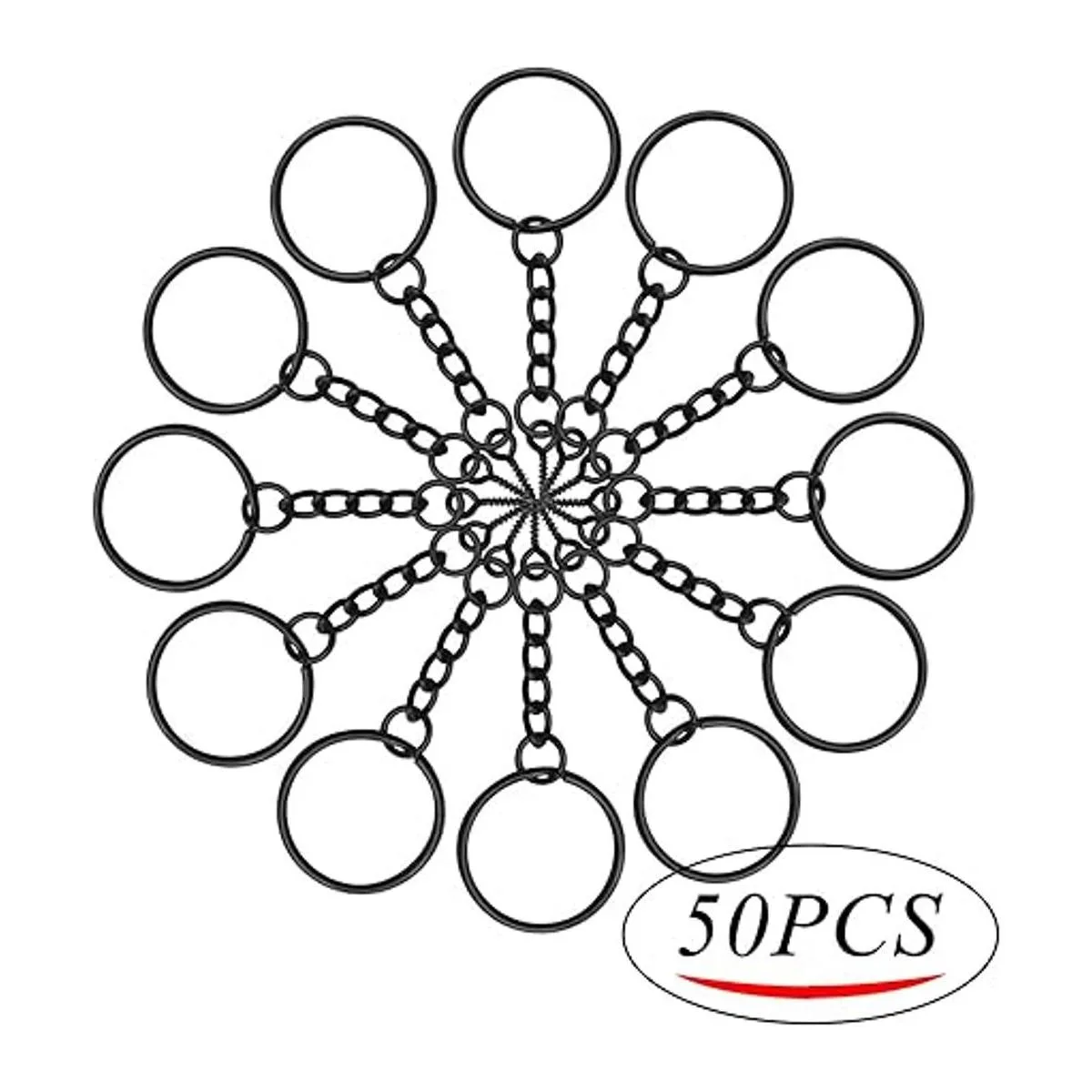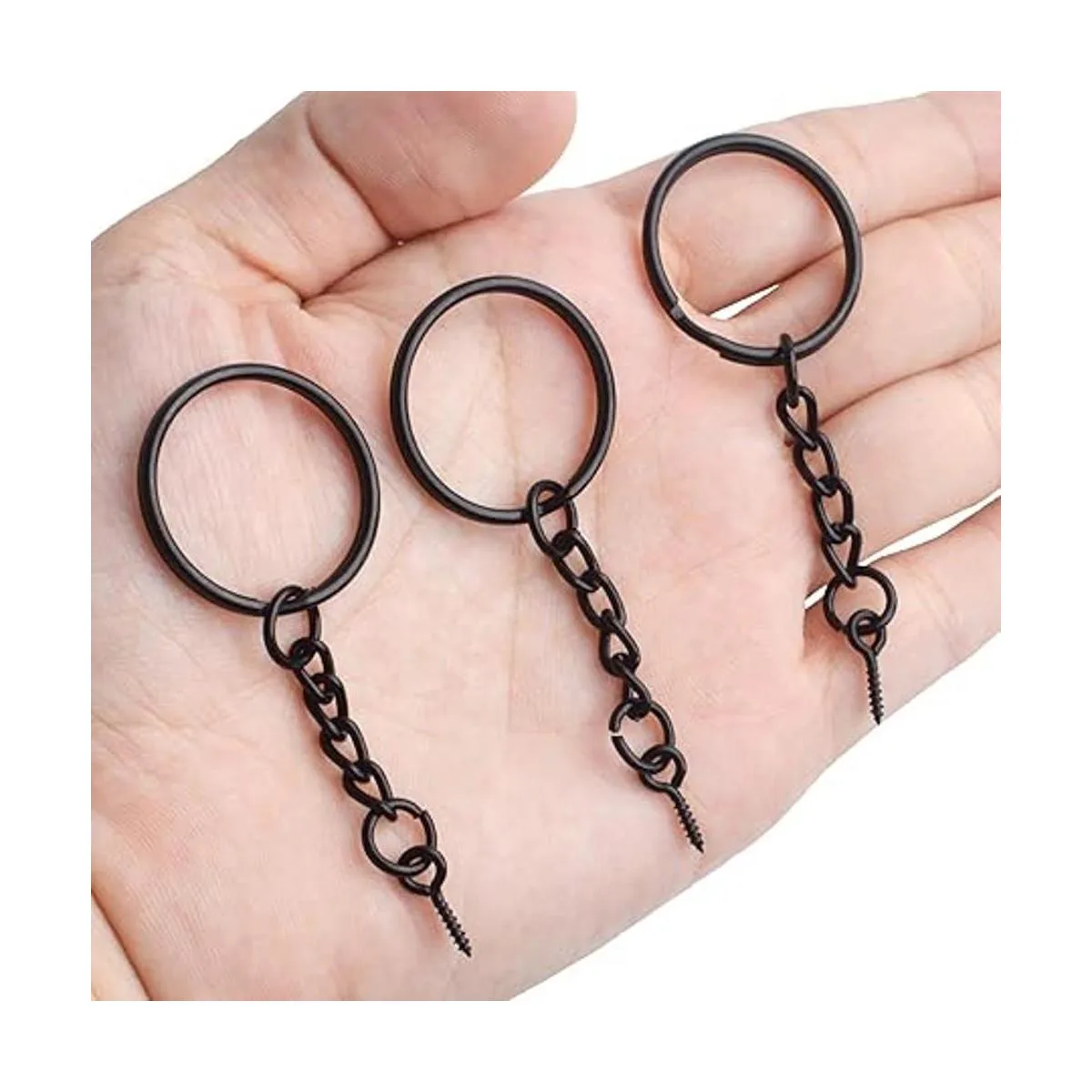 BronaGrand 50 llaveros divididos de 0.984 in con cadena extensible y pasador de ojo de tornillo de 0.472 in para hacer abalorios, color negro