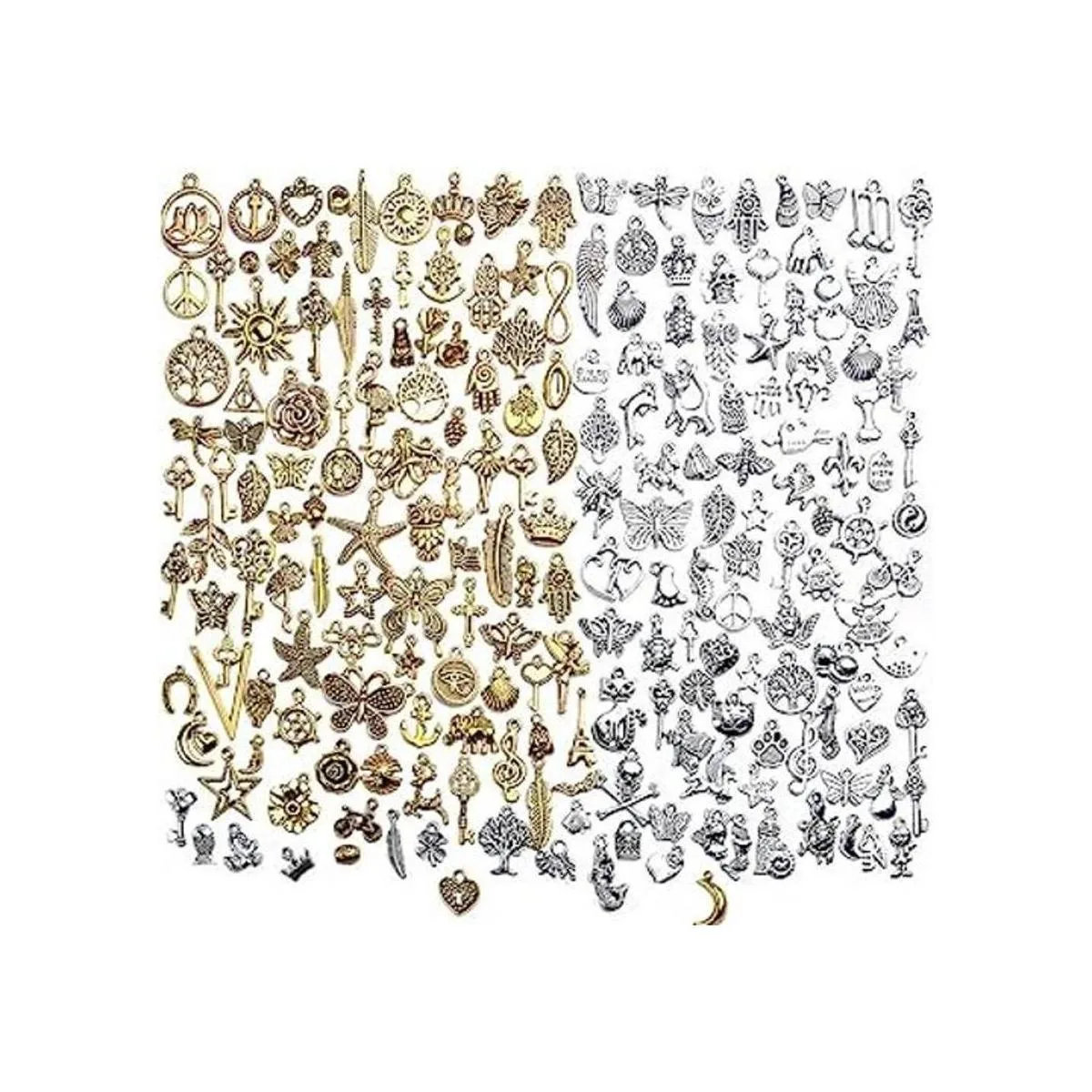 Recibirás: el paquete incluye 200 colgantes de aleación mixta aproximadamente 6.35 oz en 2 colores, 100 piezas de cada color, gran cantidad para tus necesidades de bricolaje.