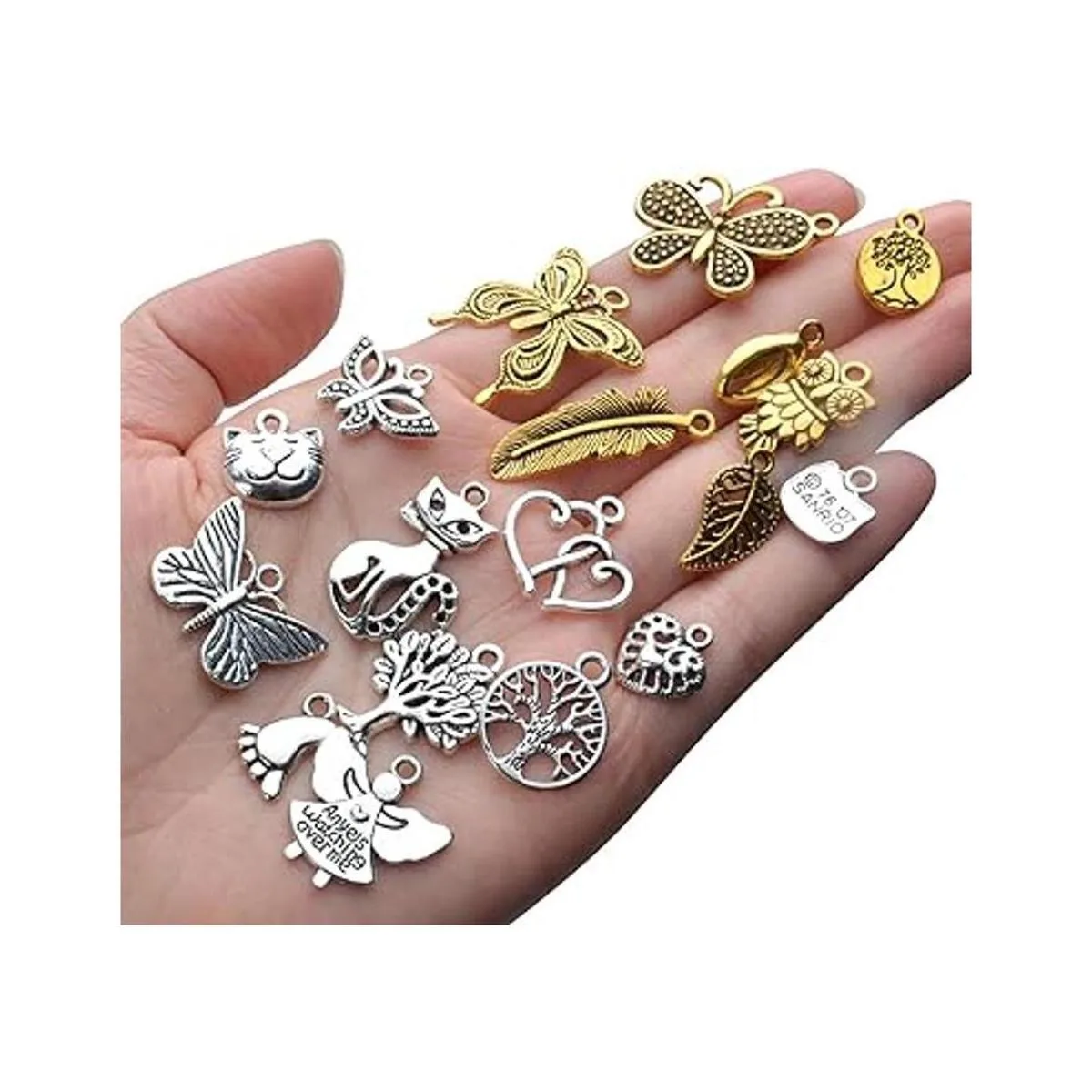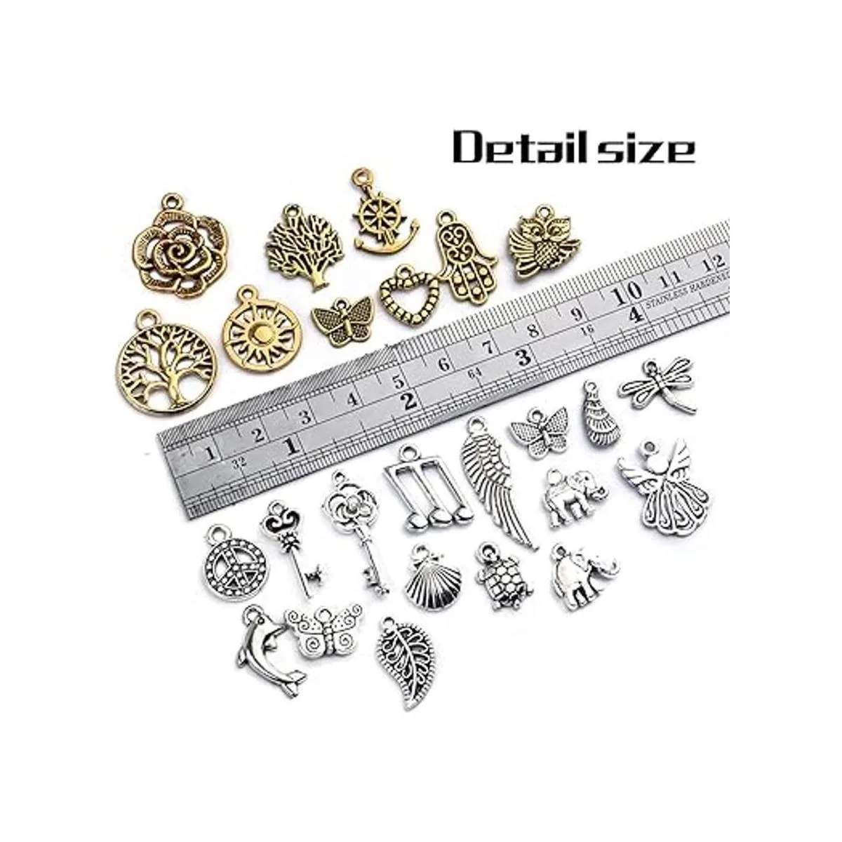 Material de calidad: estos colgantes y dijes mixtos están hechos de aleación duradera. Color dorado antiguo y plateado. Dijes de diseño exquisito y clásico.