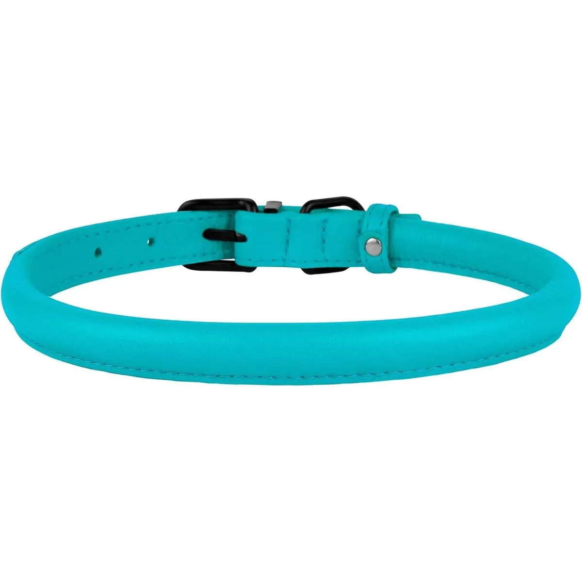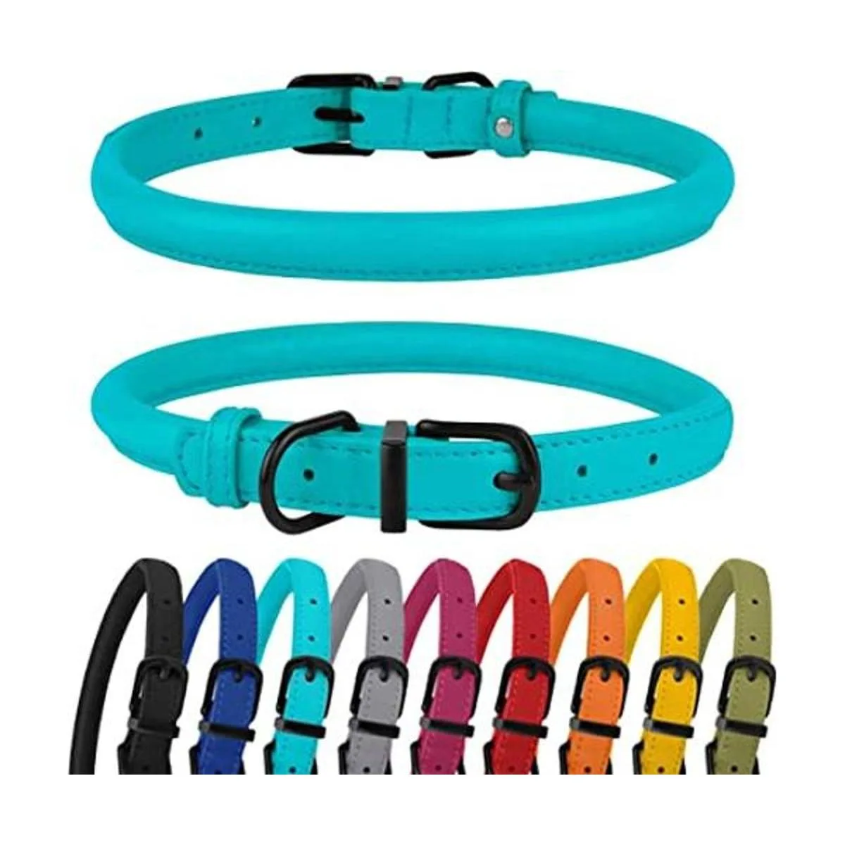 BRONZEDOG Collar de cuero enrollado para perro de cuerda redonda suave para mascotas para perros pequeños, medianos y grandes, gato, cachorro, gatito, negro, azul, rosa, verde, amarillo, gris 9 11 pulgadas, azul aguamarina