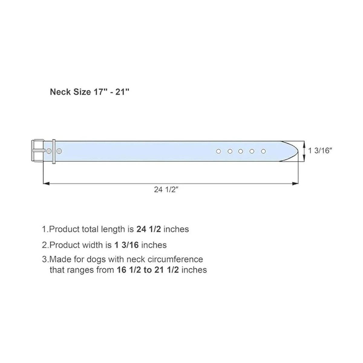 El tamaño del cuello es de 17 a 21 pulgadas. La longitud total es de 24 1/2 pulgadas. El ancho es de 1 3/16 pulgadas. El peso es de 4.30 oz.