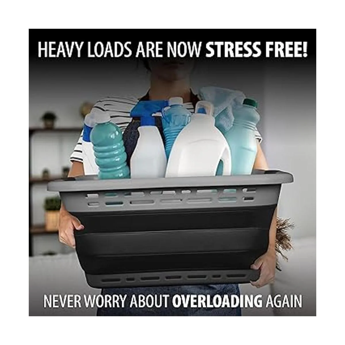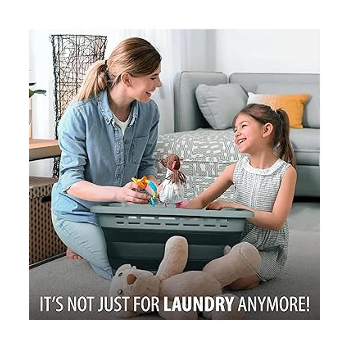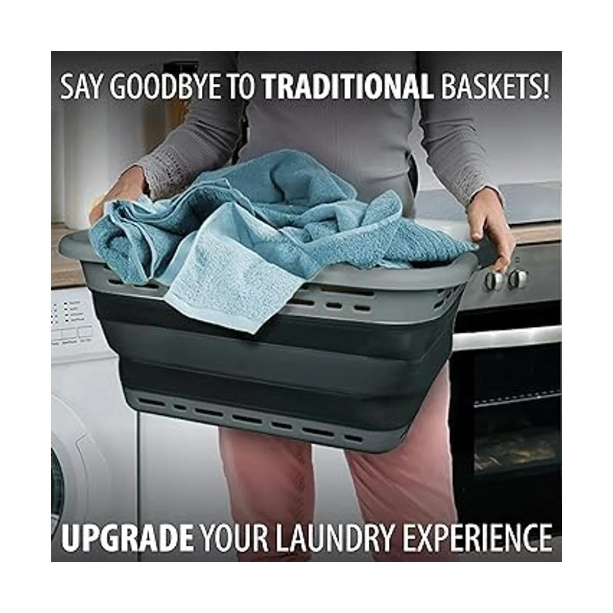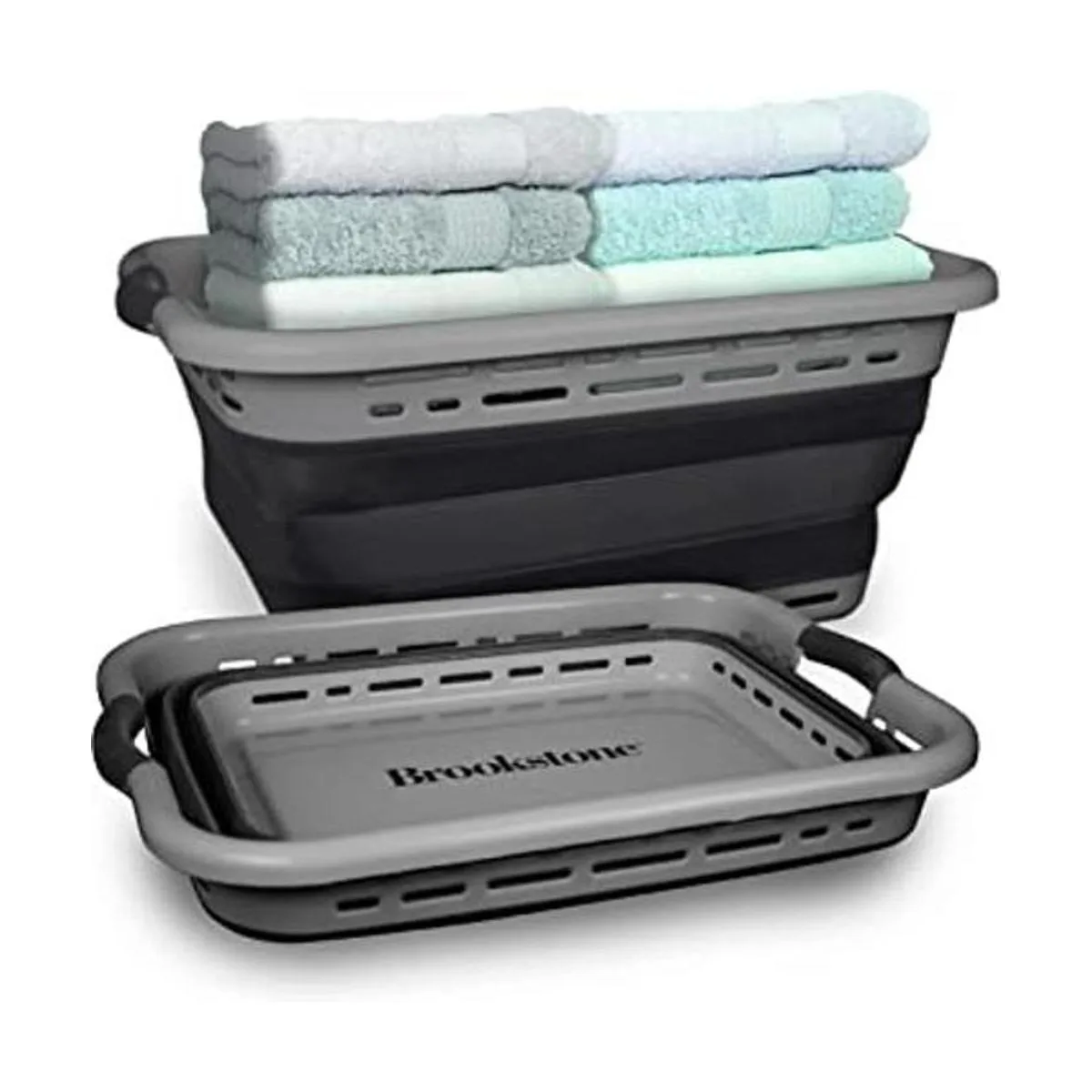 BROOKSTONE, 1 unidad, 11 galones, cesta plegable de gran capacidad de 24 pulgadas, asas de agarre antideslizantes cómodas, diseño inteligente que ahorra espacio, caja de almacenamiento portátil desplegable que se pliega a 3 pulgadas de altura, gris oscuro