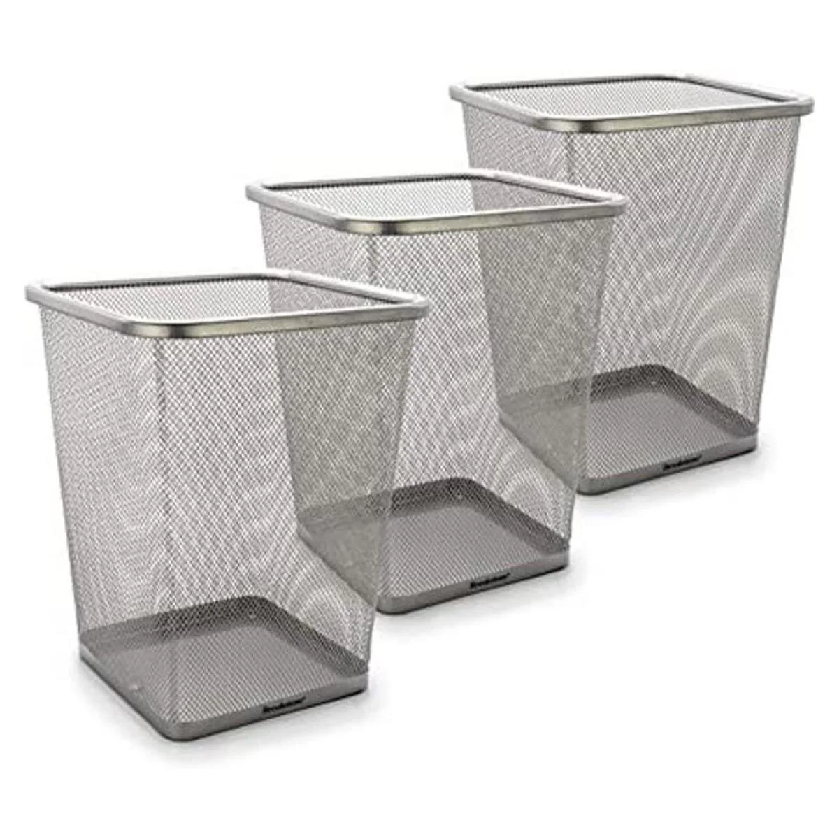 Brookstone BKH1461, paquete de 3 papelera de malla metálica para oficina y hogar, parte superior abierta, cubo de basura para debajo del escritorio, contenedor de reciclaje ligero y resistente, estándar, plateado