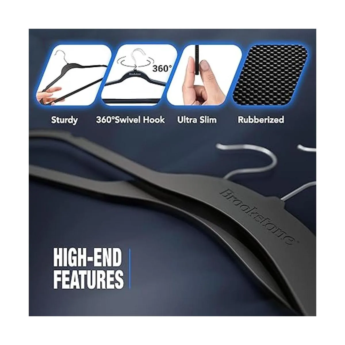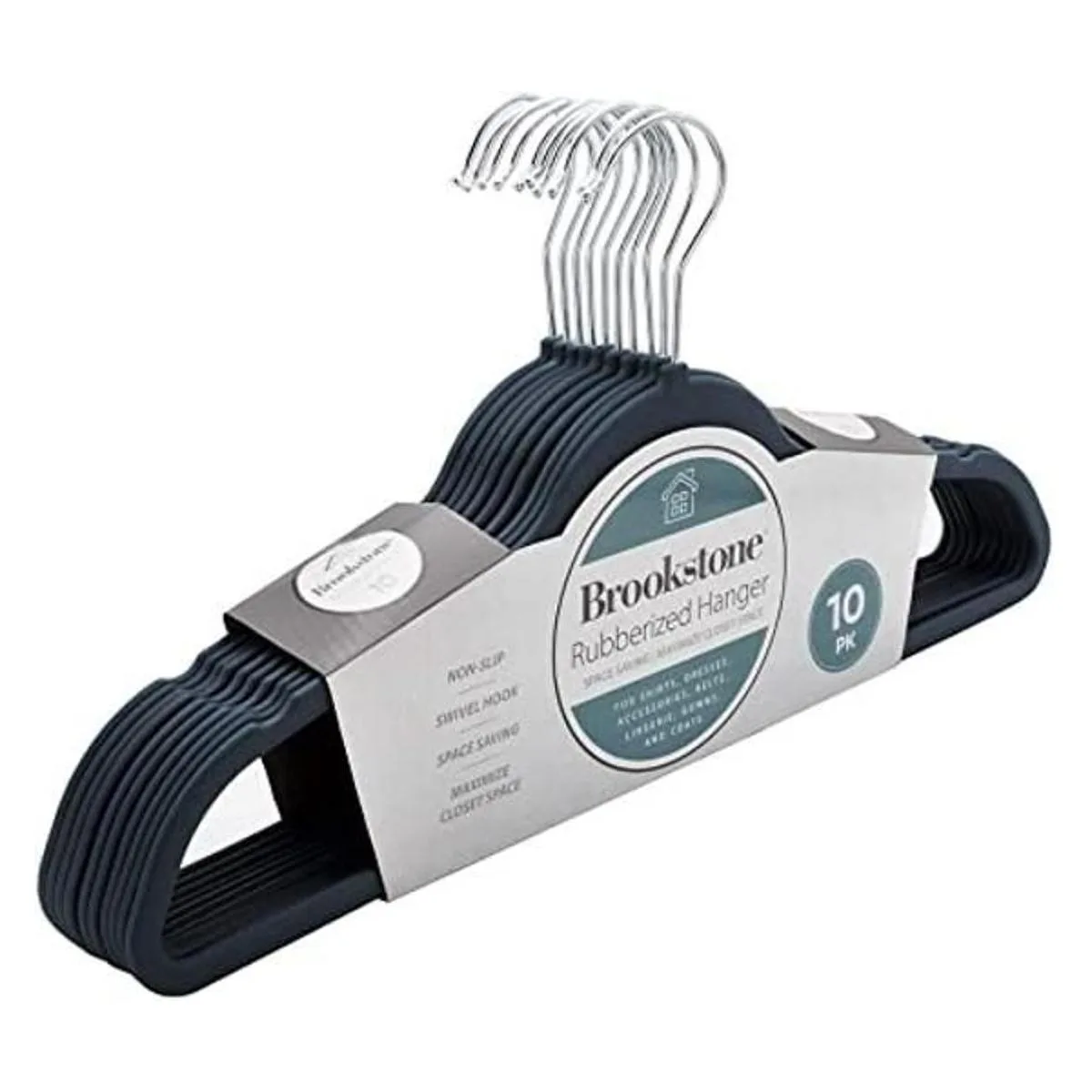 BROOKSTONE, Paquete de 10 ganchos de plástico con revestimiento de goma de alta calidad, diseño ultraligero ultra delgado, resistente, no mancha, gancho giratorio de 360