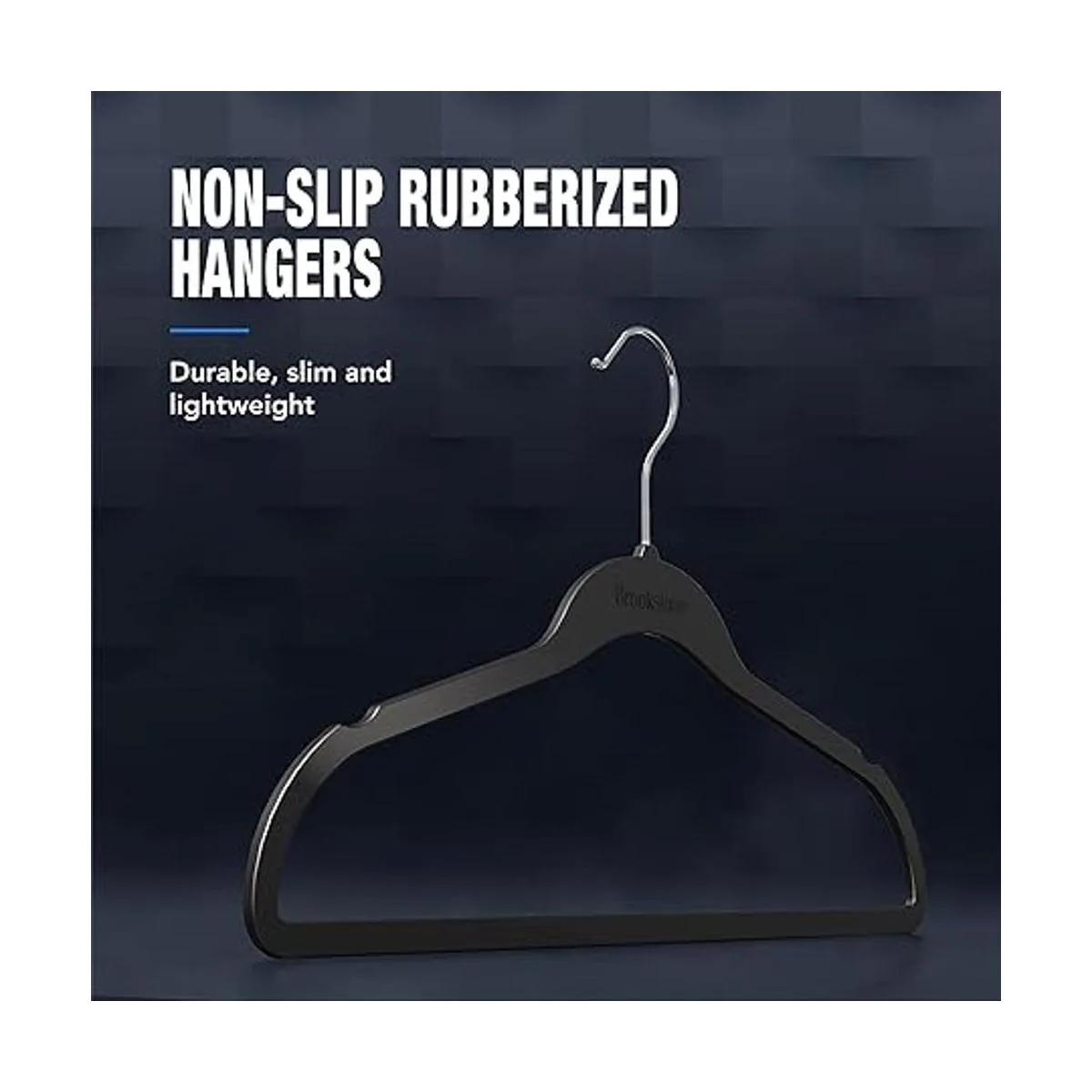 Se adapta a todos: estos ganchos son adecuados para colgar todo tipo de ropa, desde tops hasta jeans hasta abrigos. Los hombros contorneados garantizan que tu ropa no se arrugue incluso después de largos períodos de tiempo y el revestimiento de goma protege tus prendas de enganches.