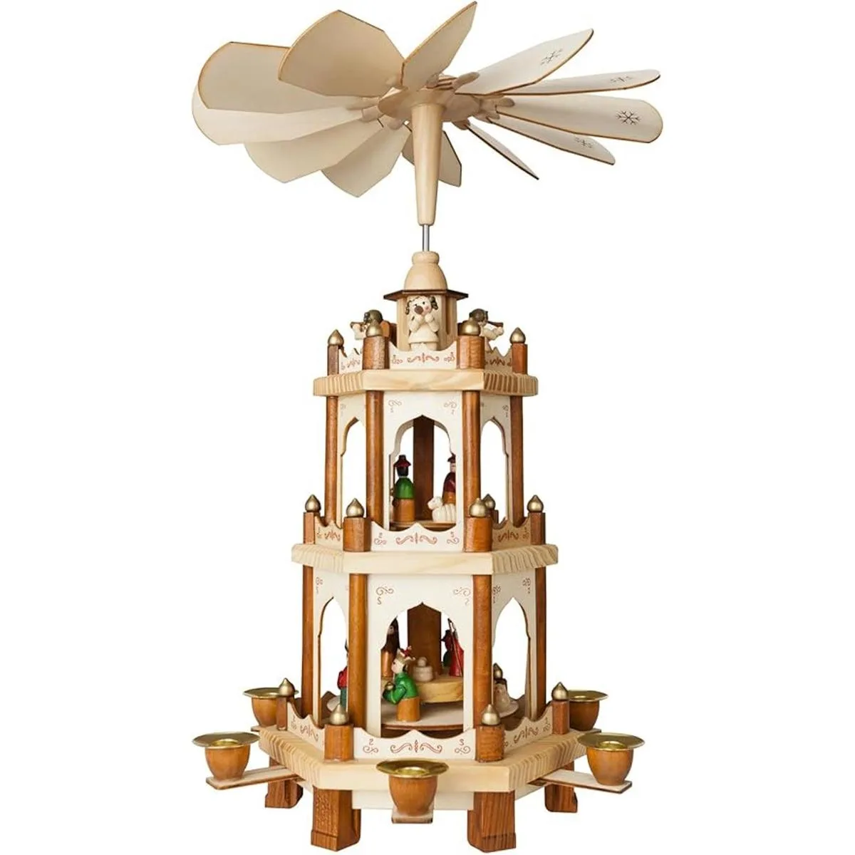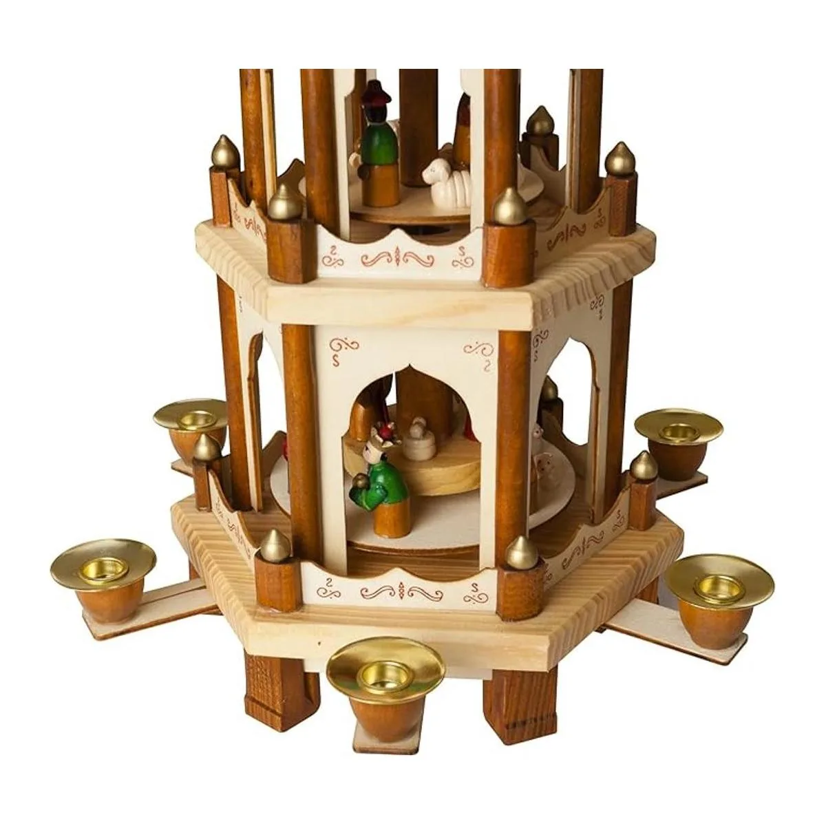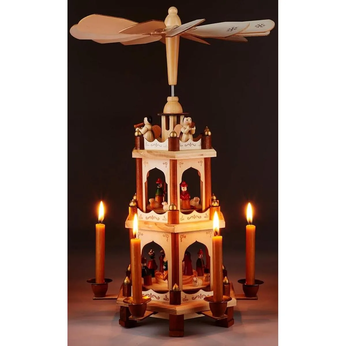 Brubaker Decoración navideña en forma piramidal, de 18 pulgadas. Soporte para 6 velas con diseño de carrusel navideño, de 3 niveles. Diseño alemán.