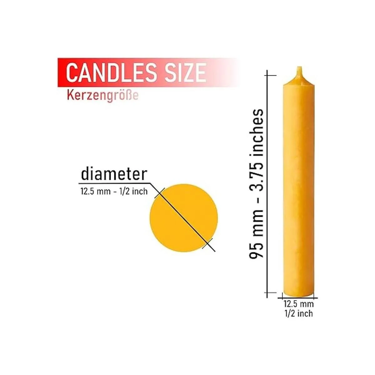 Dimensiones: altura 3.740 in, diámetro 0.492 in. Las velas están diseñadas para que coincidan con tus juegos de ángeles, pirámides o arcos de velas. Sin embargo, comprueba el tamaño de tu candelabro para asegurarte de que coincide.