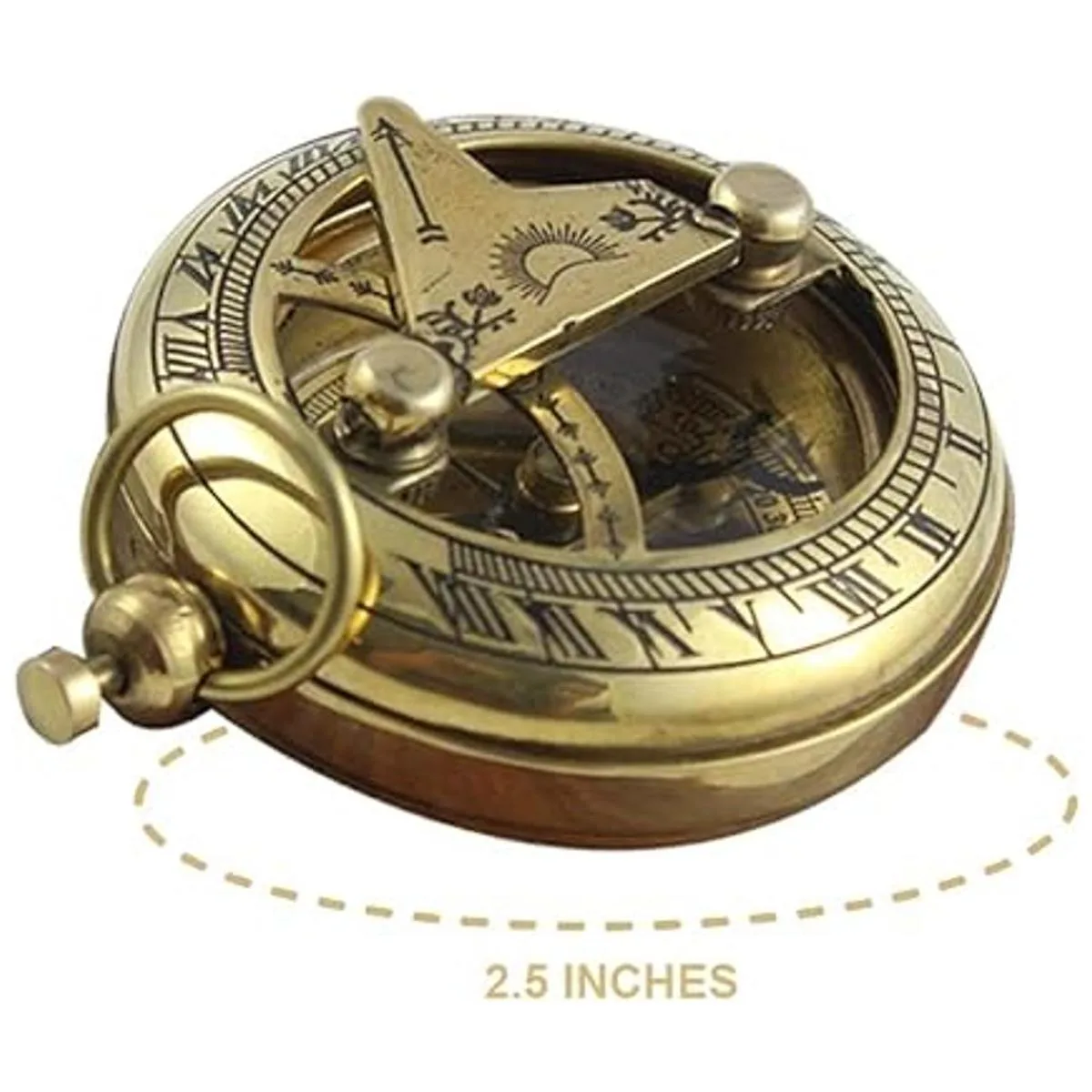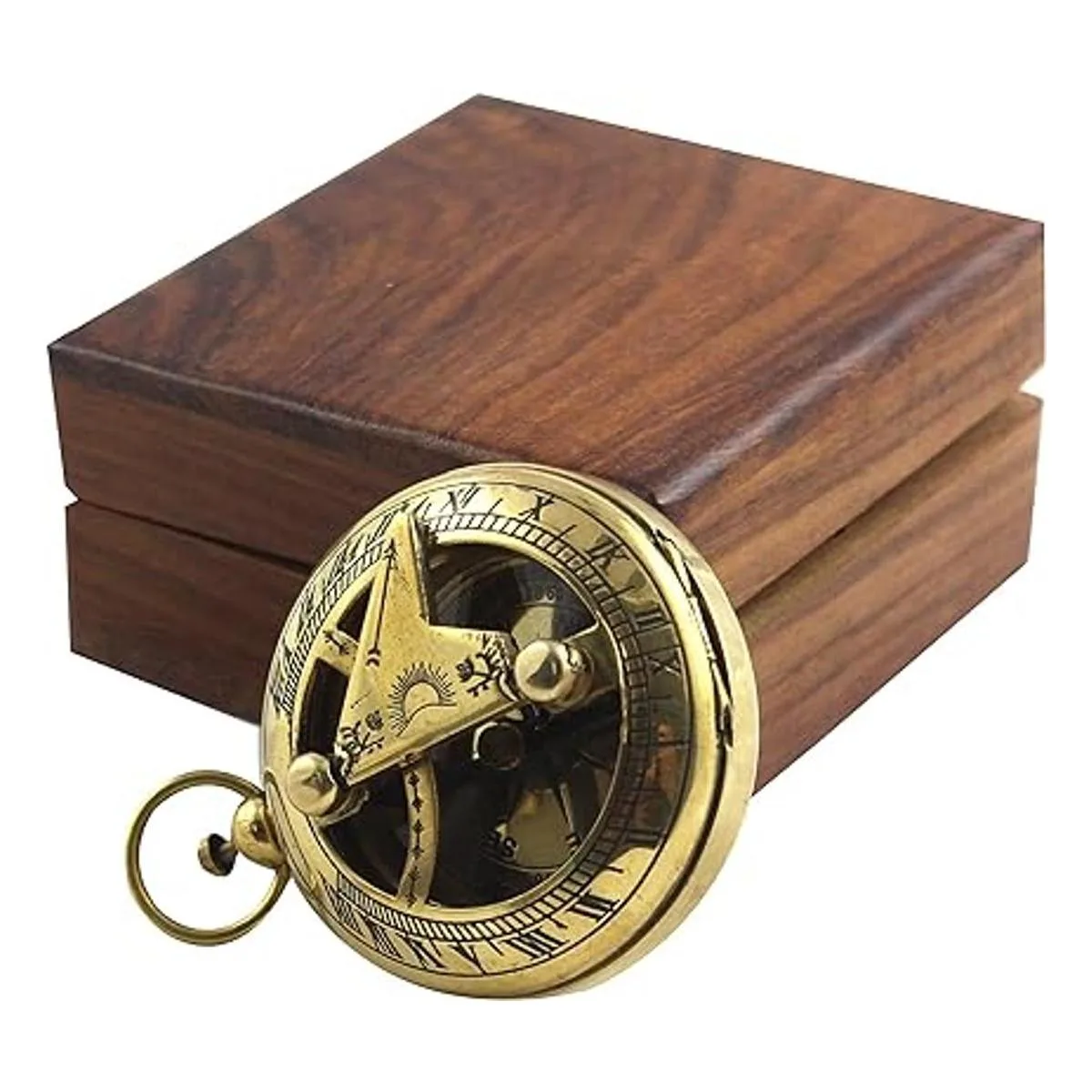 El diámetro de la brújula es de 2.5 pulgadas, peso: 5.01 oz. La brújula de reloj solar viene con una atractiva caja de madera marina hecha a mano