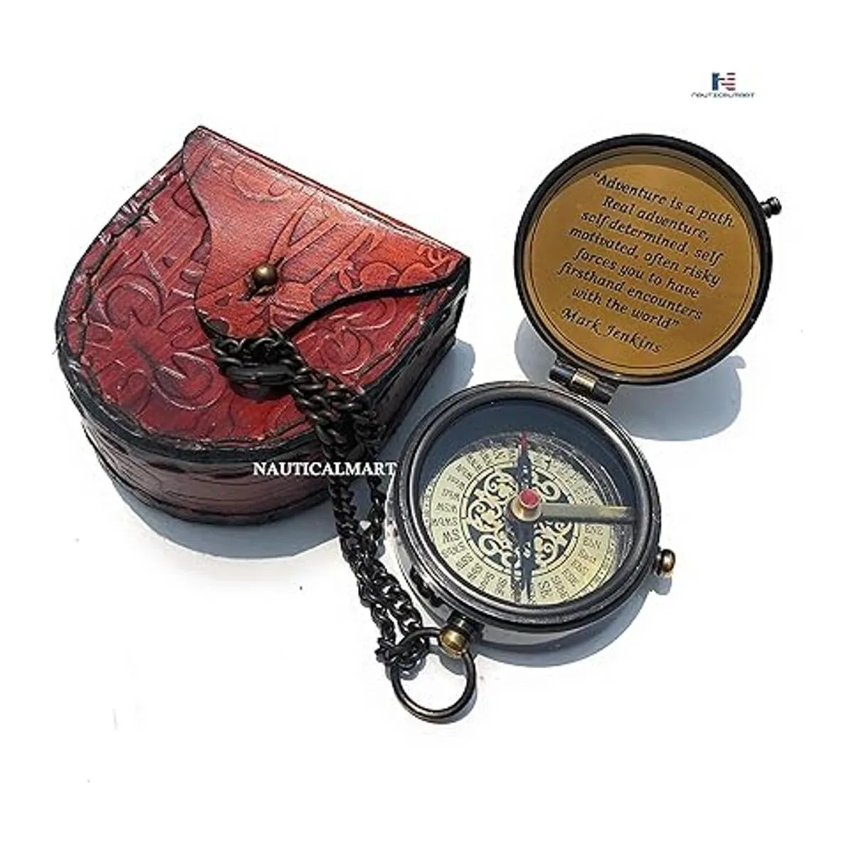 Esta brújula de dirección de estilo vintage está hecha de metal de latón de alta calidad con acabado envejecido sólido.