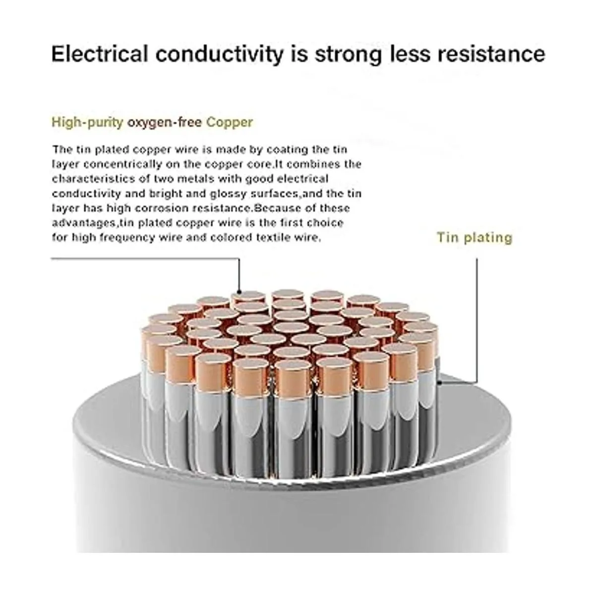 Cobre estañado sin oxígeno de alta pureza, alambre trenzado de silicona de 6 AWG tiene 3200 hebras de alambre de cobre estañado de 0.003 in, los hilos de cobre están estañados, protegiéndolos de la corrosión y haciendo que sea más fácil de soldar.