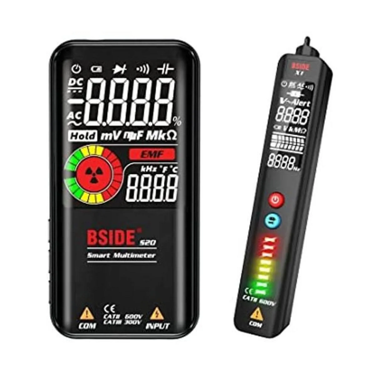BSIDE Kit de multímetro y probador de voltaje, detector EMF LCD a color recargable y pantalla EBTN kit de prueba eléctrica combinado de detector de voltaje de CA, negro, recargable S20