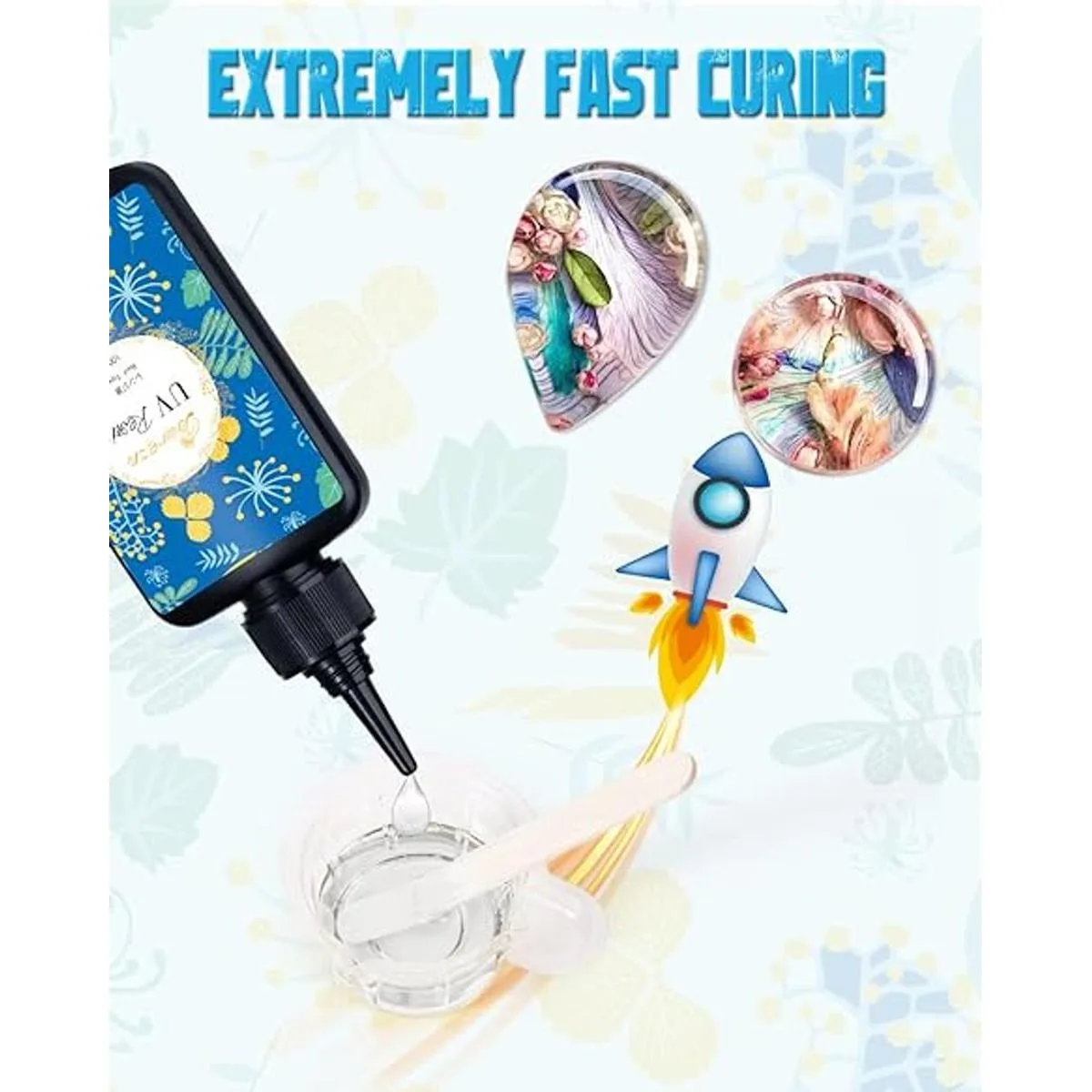 Aplicación creativa: hazlo tú mismo con resina transparente de secado UV con propiedades resistentes al amarillo, lo que puede hacer que tu creatividad artesanal sea más duradera. Perfecto para hacer joyas, aretes, colgantes, llaveros, anillos, bolígrafos, medallas, ceniceros, insignias y mucho más. Lo mejor de todo es que puedes dar estas ideas a tus seres queridos.