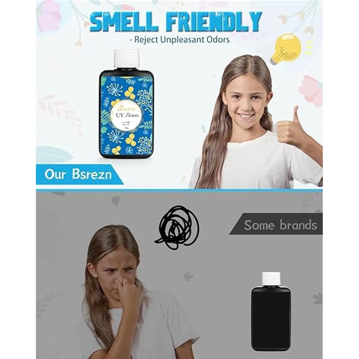 Fórmula mejorada: la resina activada por UV Bsrezn utiliza materias primas de alta calidad y respetuosas con el medio ambiente y está formulada con una fórmula exclusiva, que puede reducir significativamente el olor del pegamento UV y acortar en gran medida el tiempo de secado. No solo estarás libre de olores desagradables, sino que también podrás disfrutar de los resultados de tu trabajo en el menor tiempo posible.