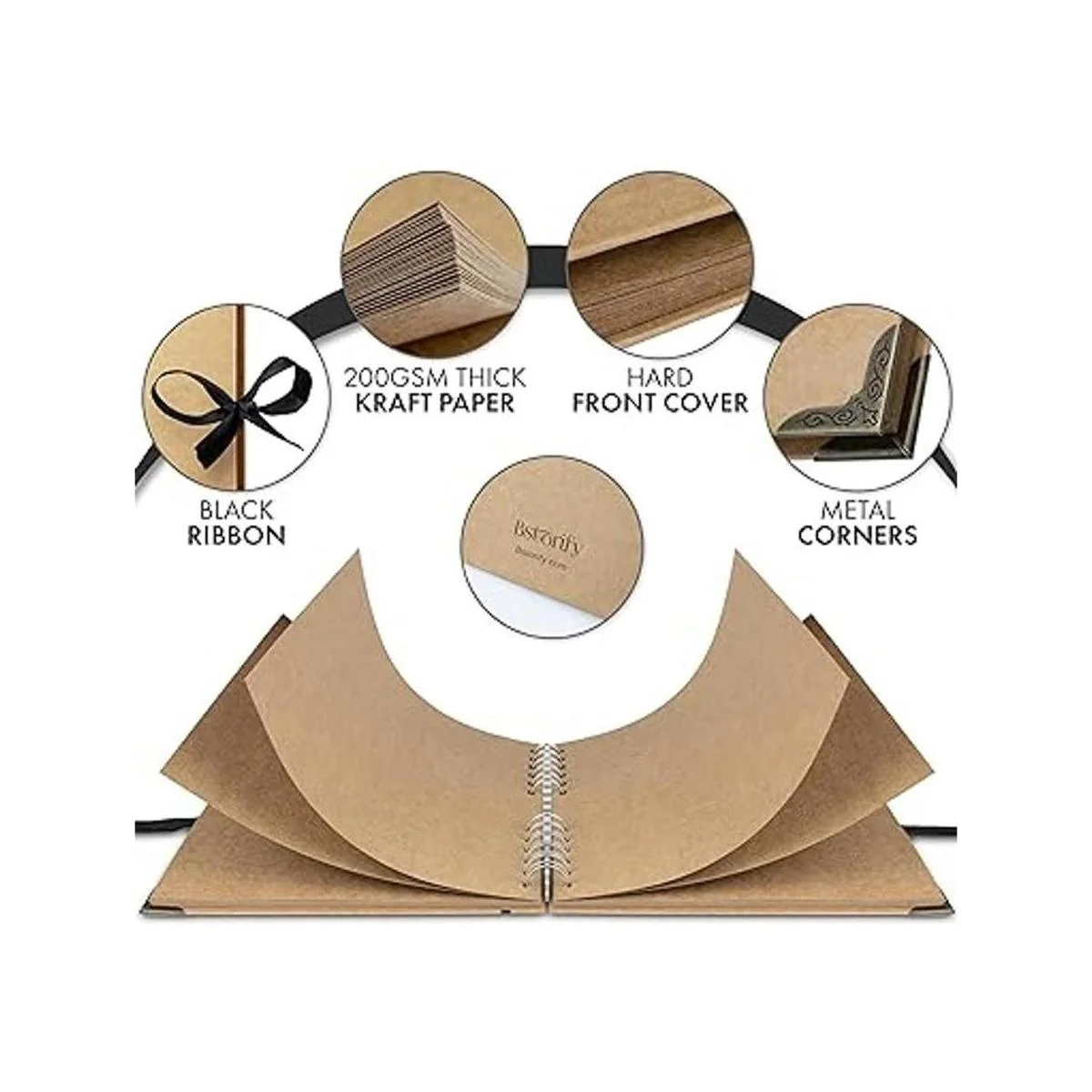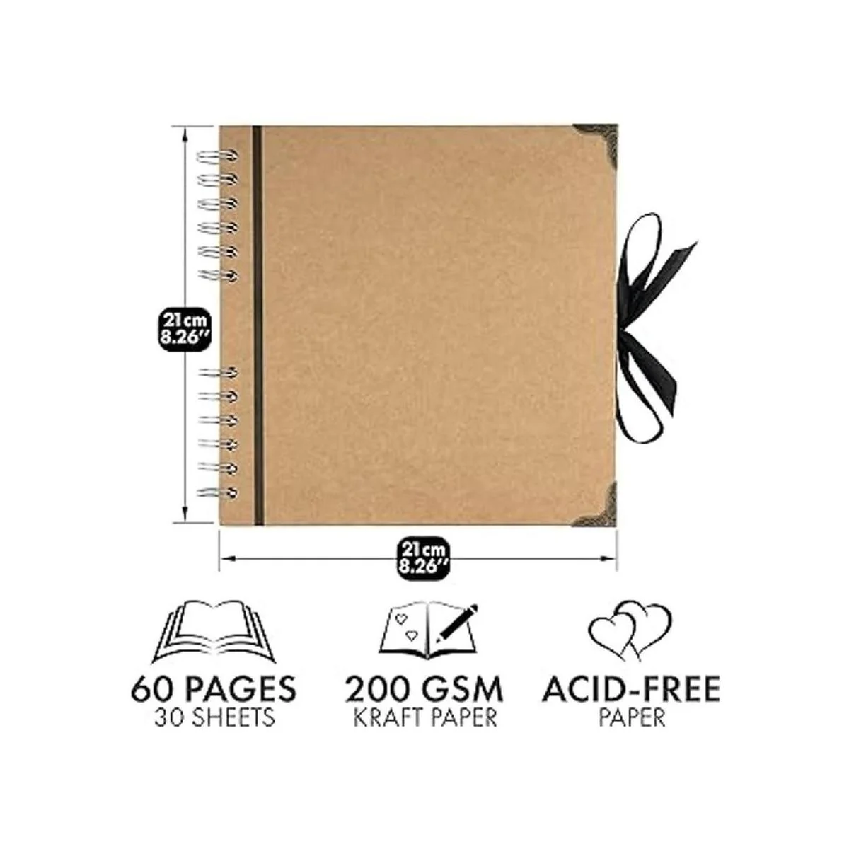 Bstorify lbum de recortes, 60 páginas 8 x 8 pulgadas, papel kraft grueso de 7.05 ozm, libro de recortes con protectores de esquina, cierre de cinta, ideal para tus álbumes de recortes, proyectos de arte y manualidades