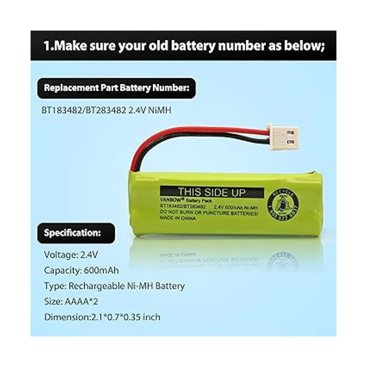 Reemplaza la batería de teléfono inalámbrico BT183482 BT283482 perfectamente, protección contra sobretensión, sobrecorriente, sobrecarga y cortocircuito y la mejor longitud de cable para el espacio.